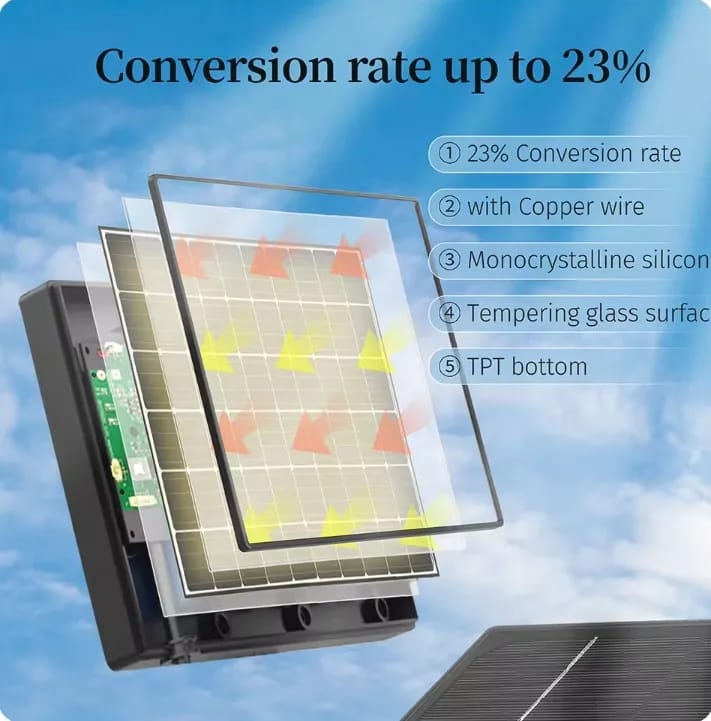 Monocrystalline Silicon Efficiency: Monocrystalline silicon ensures high charging efficiency in various conditions.
