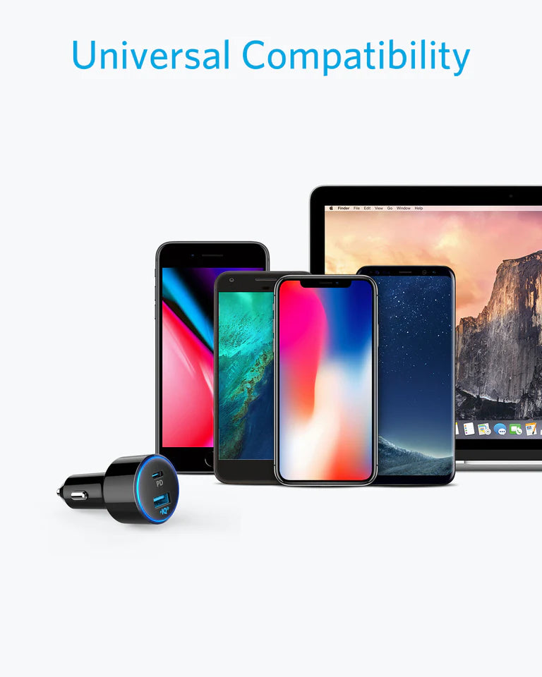 - One Charger, Any Device: Charge USB-C and standard USB phones and tablets, all from one travel-ready car charger.