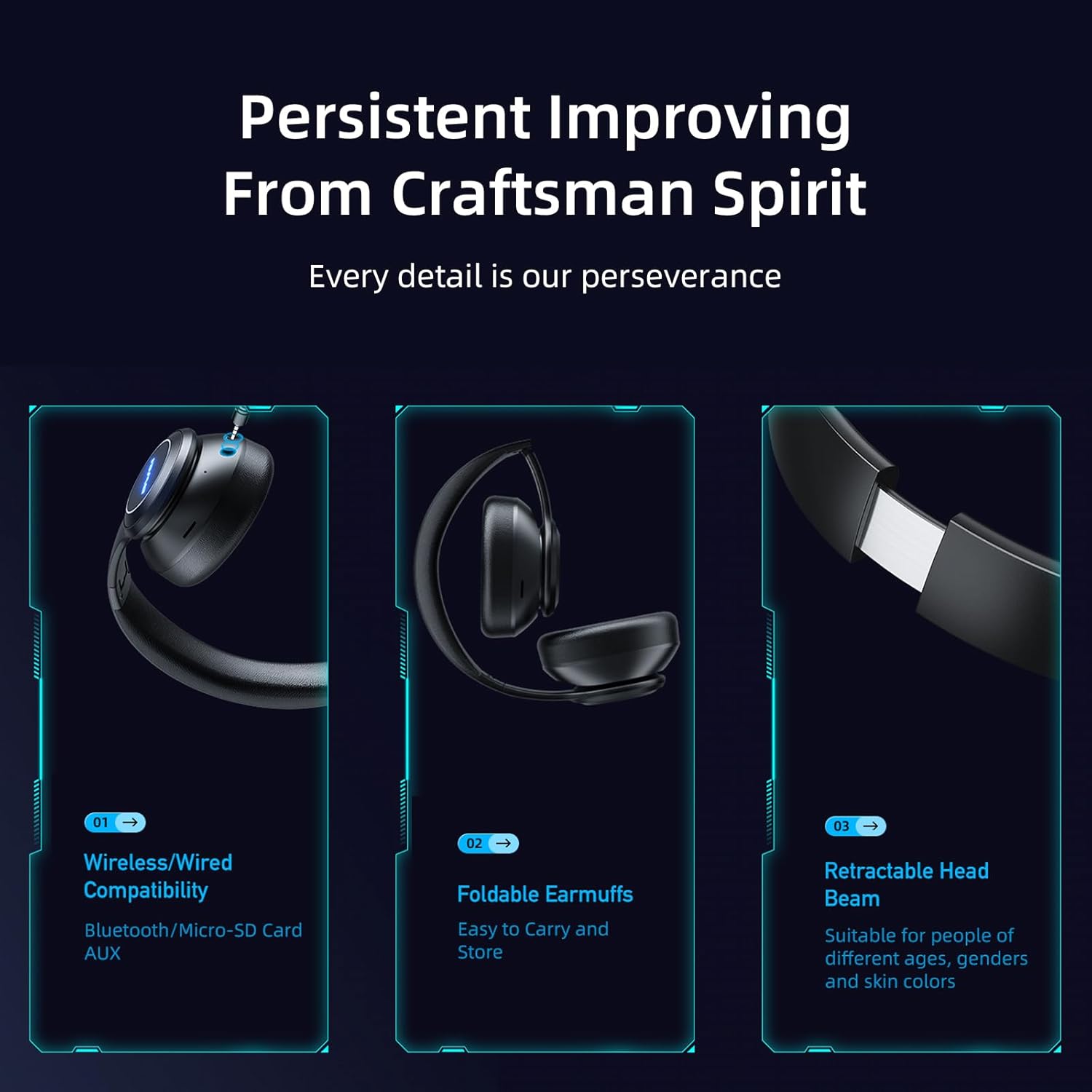 Comfortable and Foldable Design: The ergonomic over-ear design with soft memory foam ear cushions ensures comfort during extended use, and the foldable structure allows for easy portability.