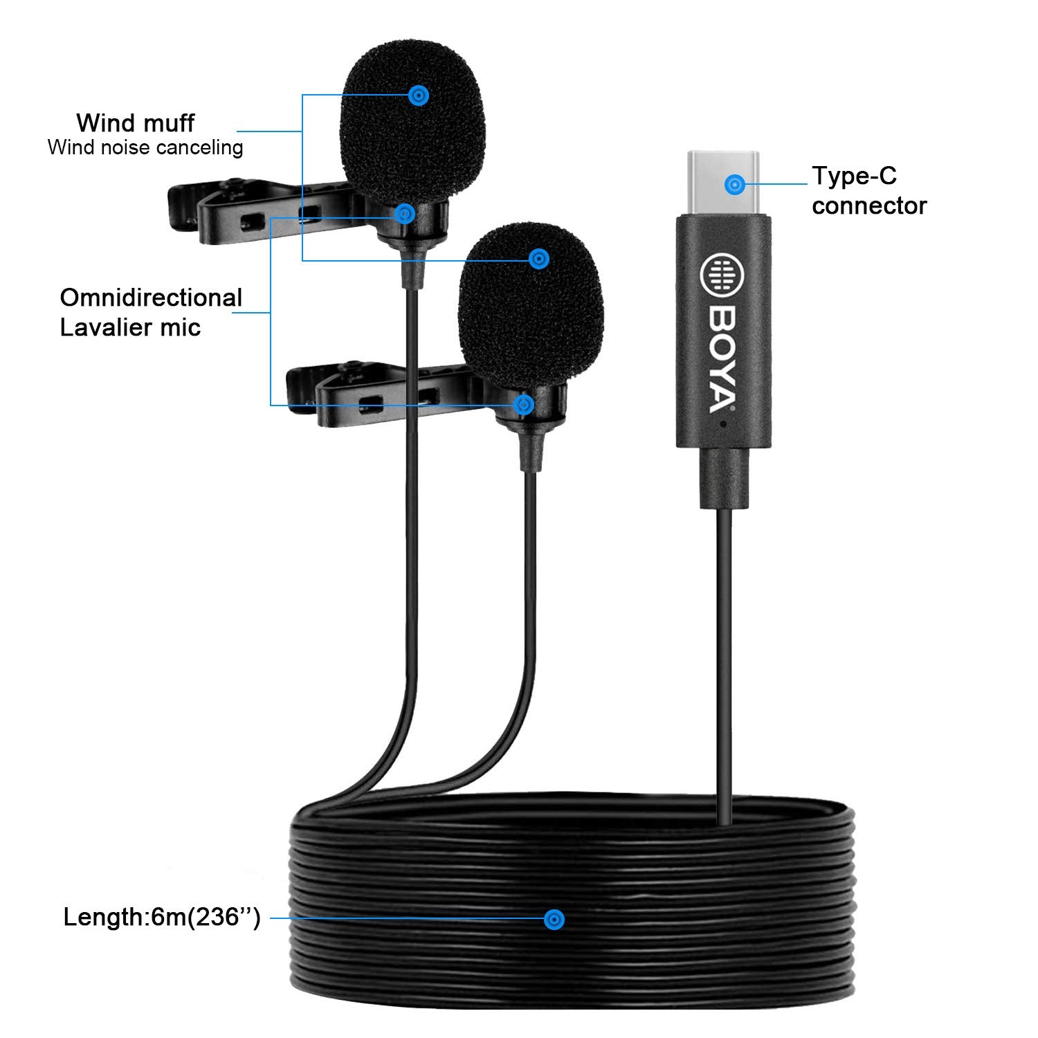 BOYA BY-M3D is a digital USB Type-C microphone and comprised of two of the well-received omnidirectional condenser lavalier microphones, which is specially designed for Android devices and others devices with Type-C connector, such as iPad Pro, Mac PC.