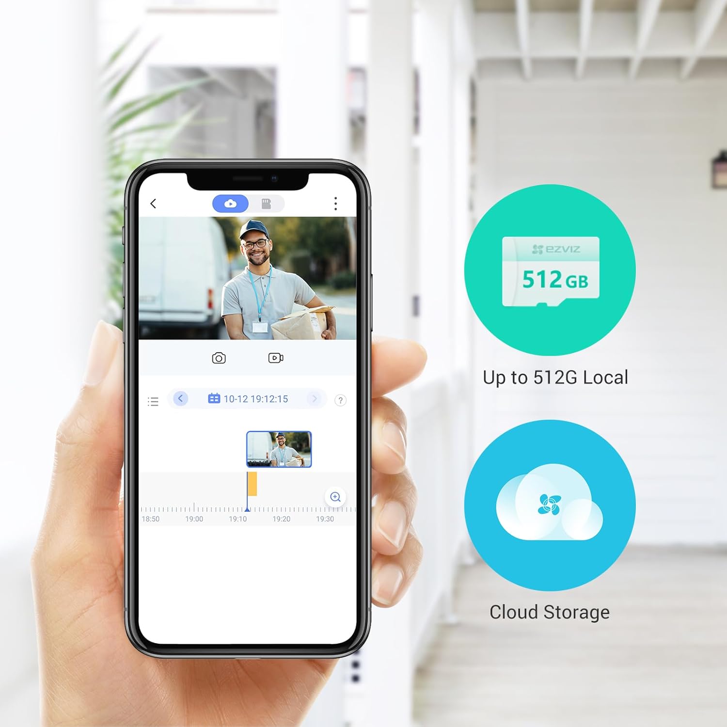 The EZVIZ H5 4G is compatible with the EZVIZ app, allowing for easy remote access and control from your smartphone or tablet. It supports microSD cards up to 512GB for local storage and offers cloud storage options via EZVIZ CloudPlay (subscription required).