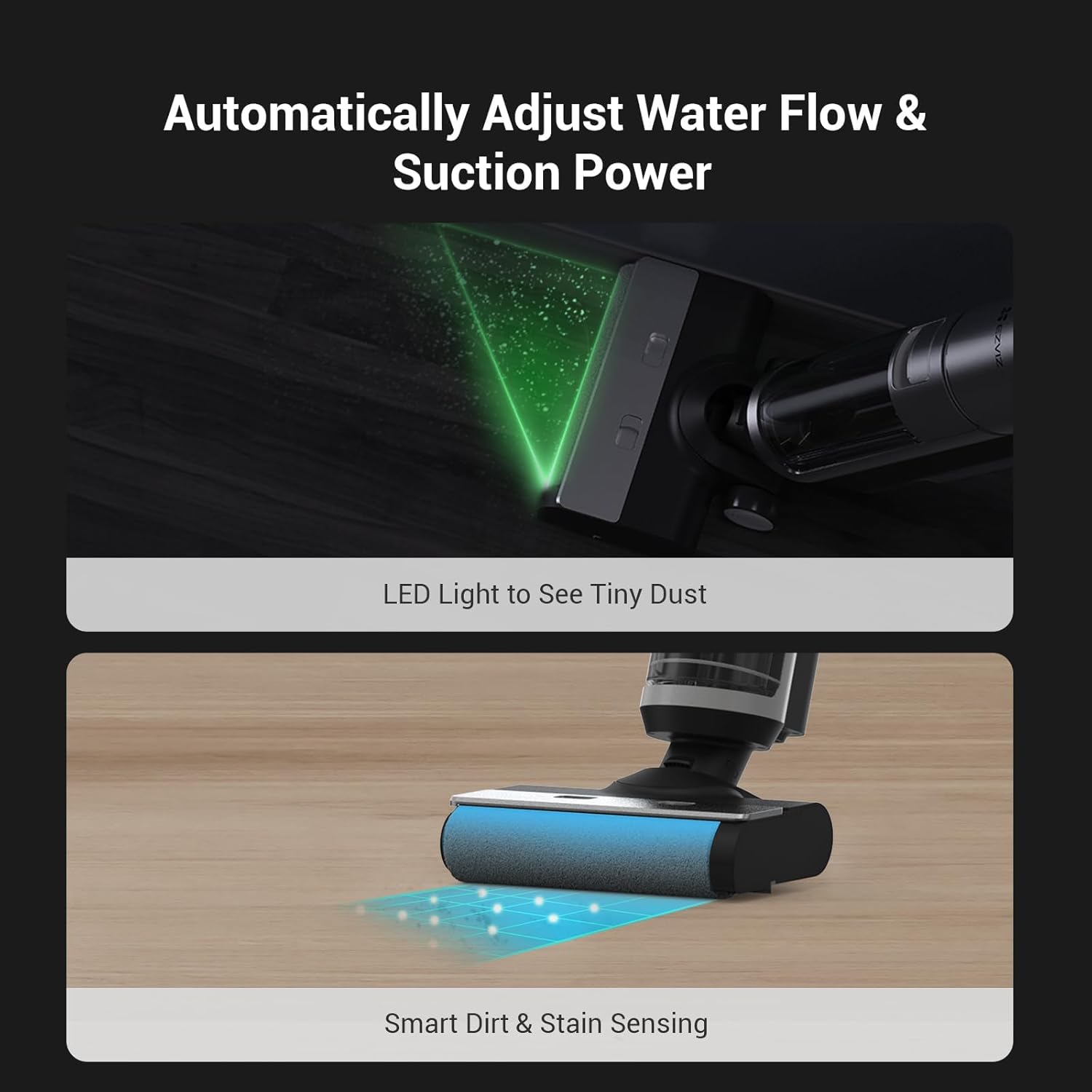 - Smart Dirt Sensing & Three Clean Modes: With a built-in infrared sensor, the RH2 detects waste to know how dirty the floor is. It automatically adjusts water flow, roller speed, and suction power based on the exact need. No more sore back or straining to clean the floor. With Auto, Standard and Power modes, you decide how to accurately balance the runtime with just the right level of cleaning. With no wires or power cord, you can go anywhere, upstairs or down.