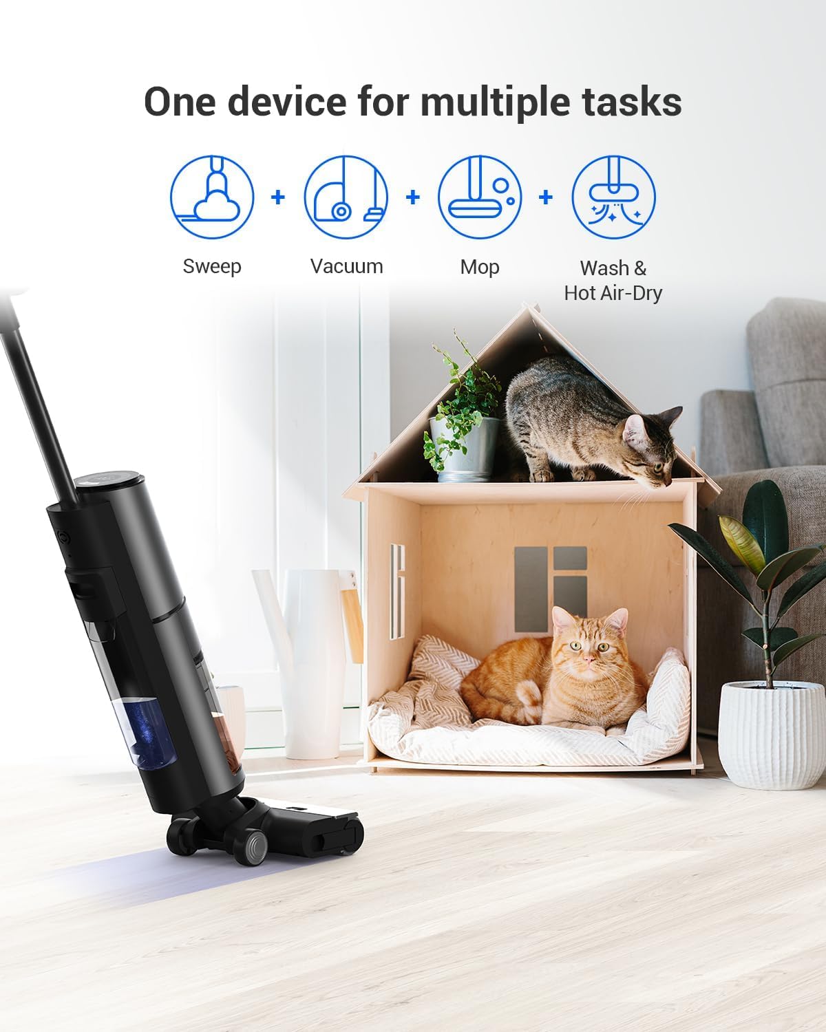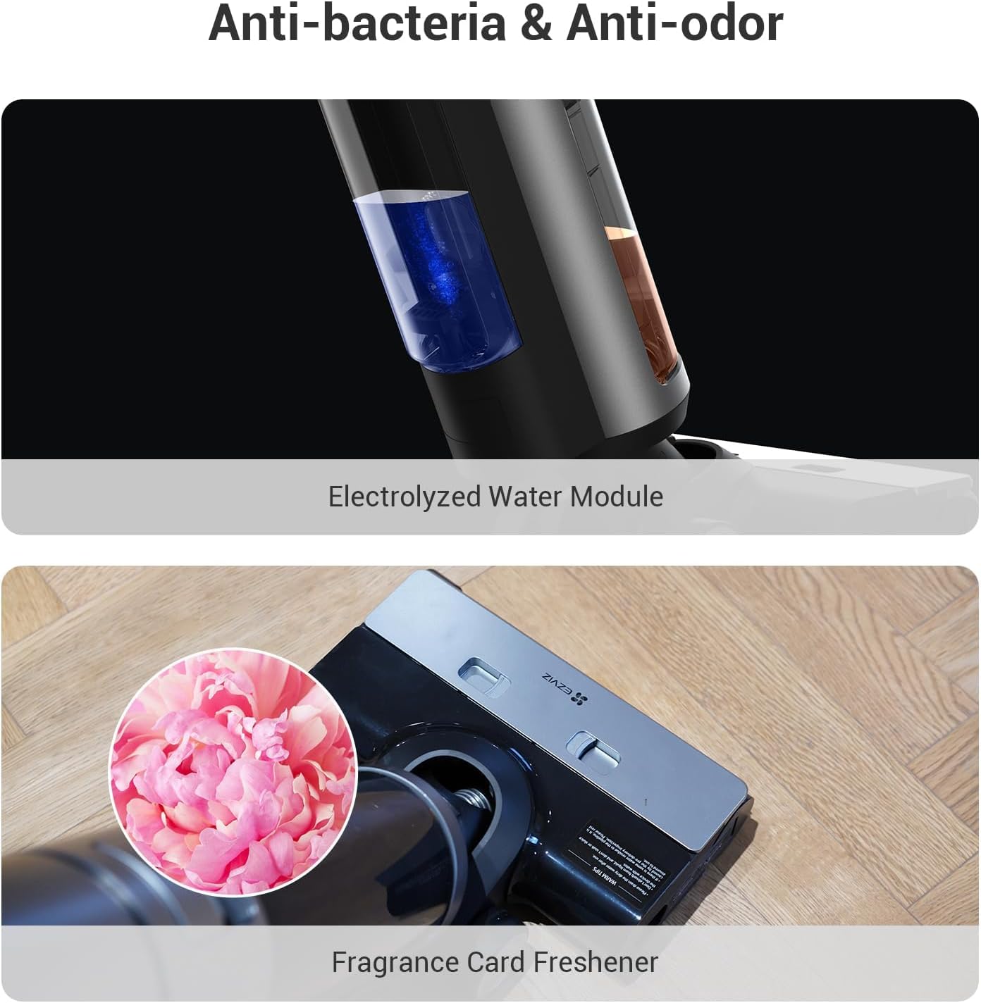 EZVIZ Cordless Wet-Dry Vacuum Cleaner, Sweep & Mop, Self-Cleaning, Anti-Bacteria, Anti-Odor, Clean up to 200m², Ozone Sterilization Air-Dry, Stain Sensing, Dual-Tank, LED, Safe for Pet