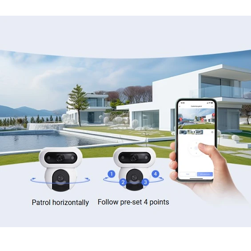 Equipped with two 2K+ lenses—one wide-angle (2.8 mm, F/1.6) covering up to 110°, the other telephoto (6 mm) for close-up detail—capturing both broad and detailed views simultaneously -