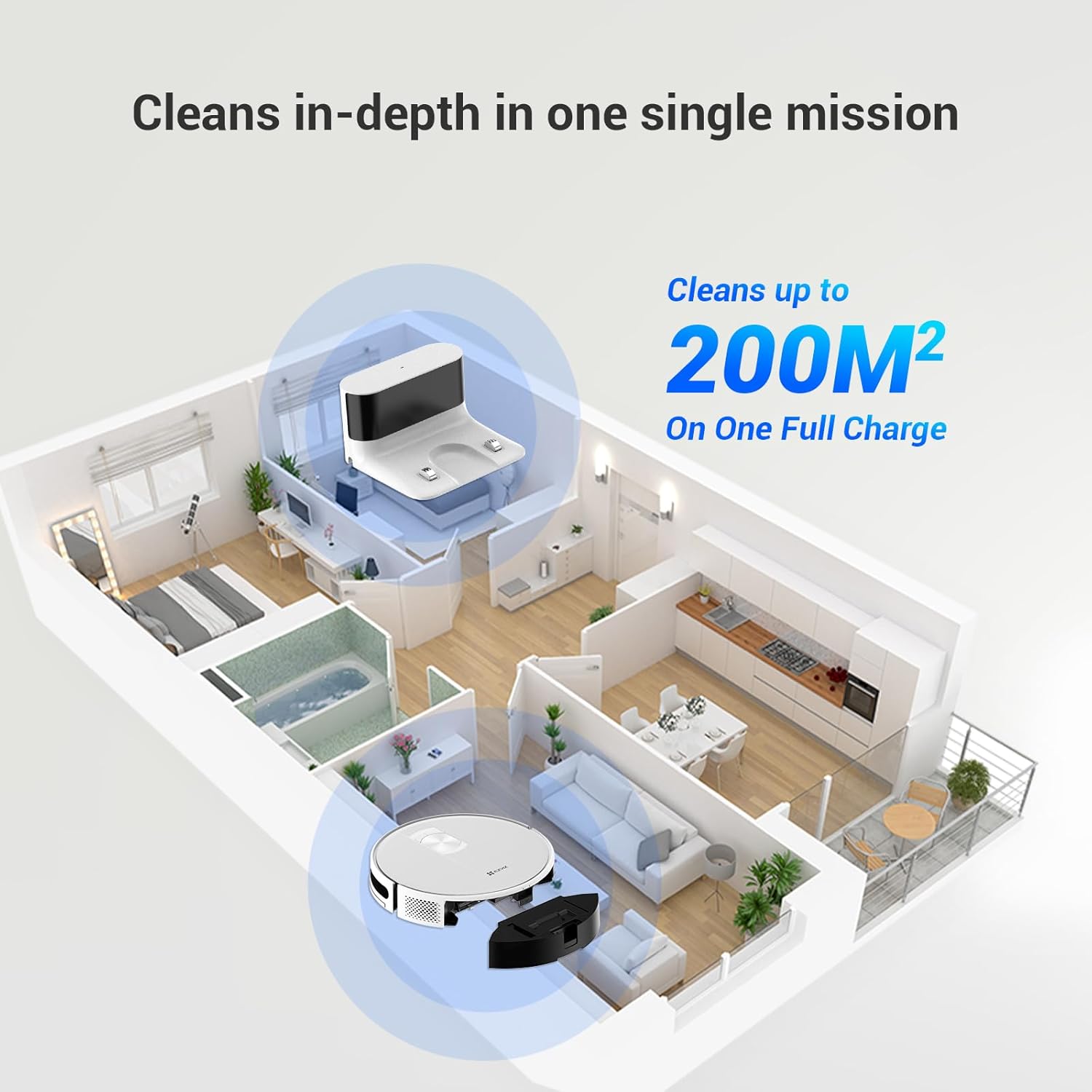 - Extended running time and low noise technology: EZVIZ RC3 robot vacuum cleaner can cover up to 200 m² with a full charge. Low noise level during operation means the RC3 is pet friendly. Soft and durable TPE plastic minimizes damage from impacts.