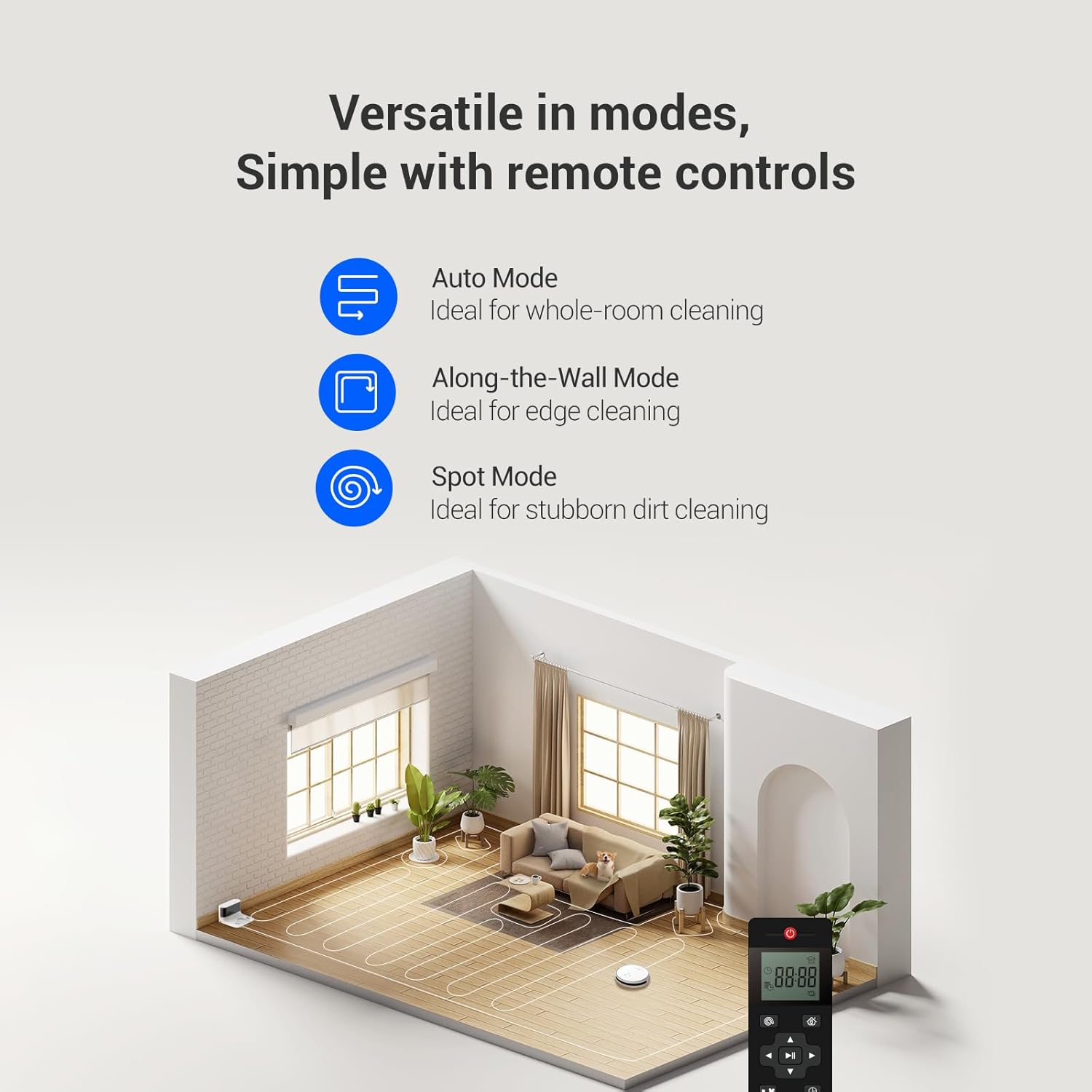 - Task setting and easy remote control: you can start or interrupt cleaning tasks, control the direction of the robot and even set a schedule for the next mission. It automatically returns to the base and charges itself when cleaning is finished. All family members can operate the RC3 robot with the remote control.