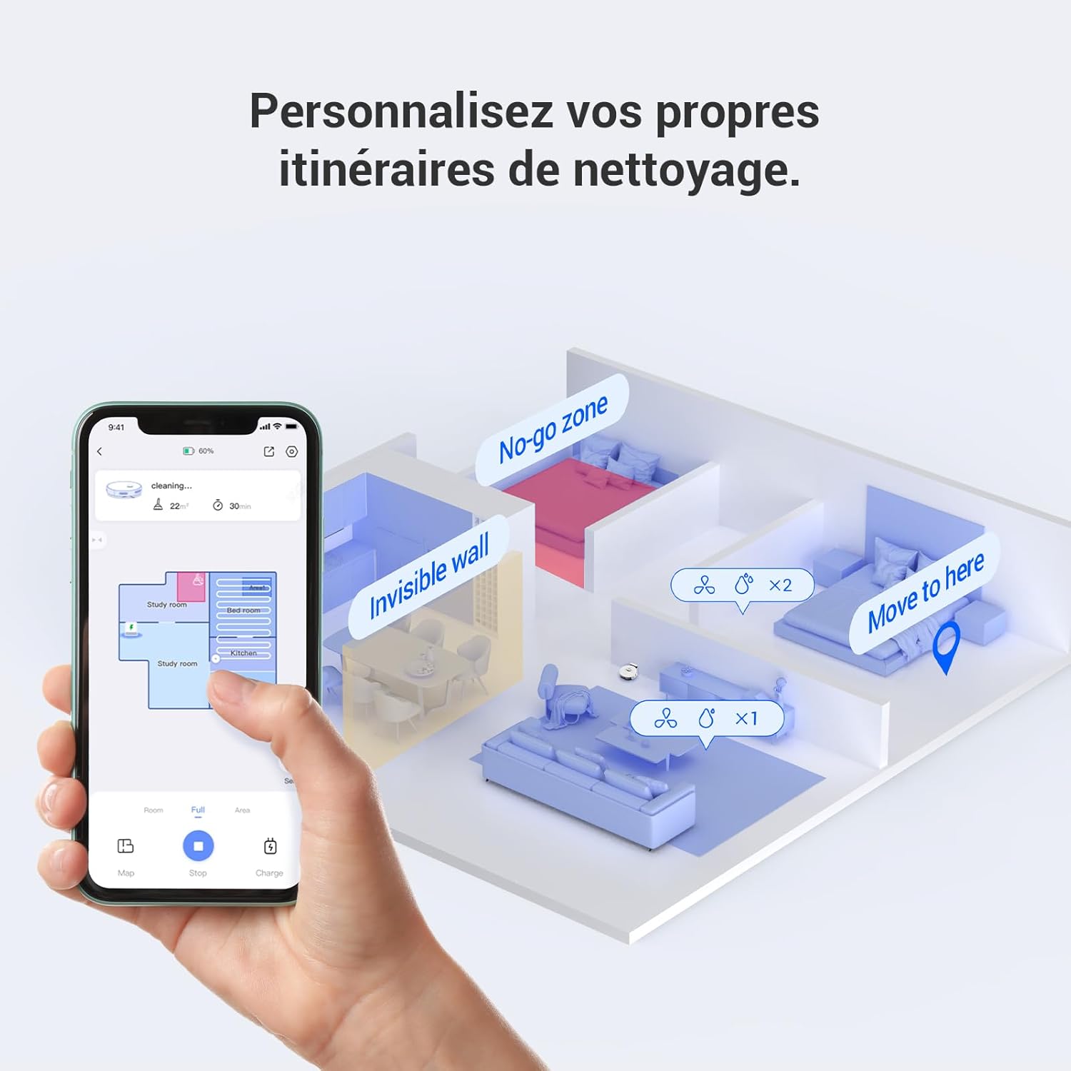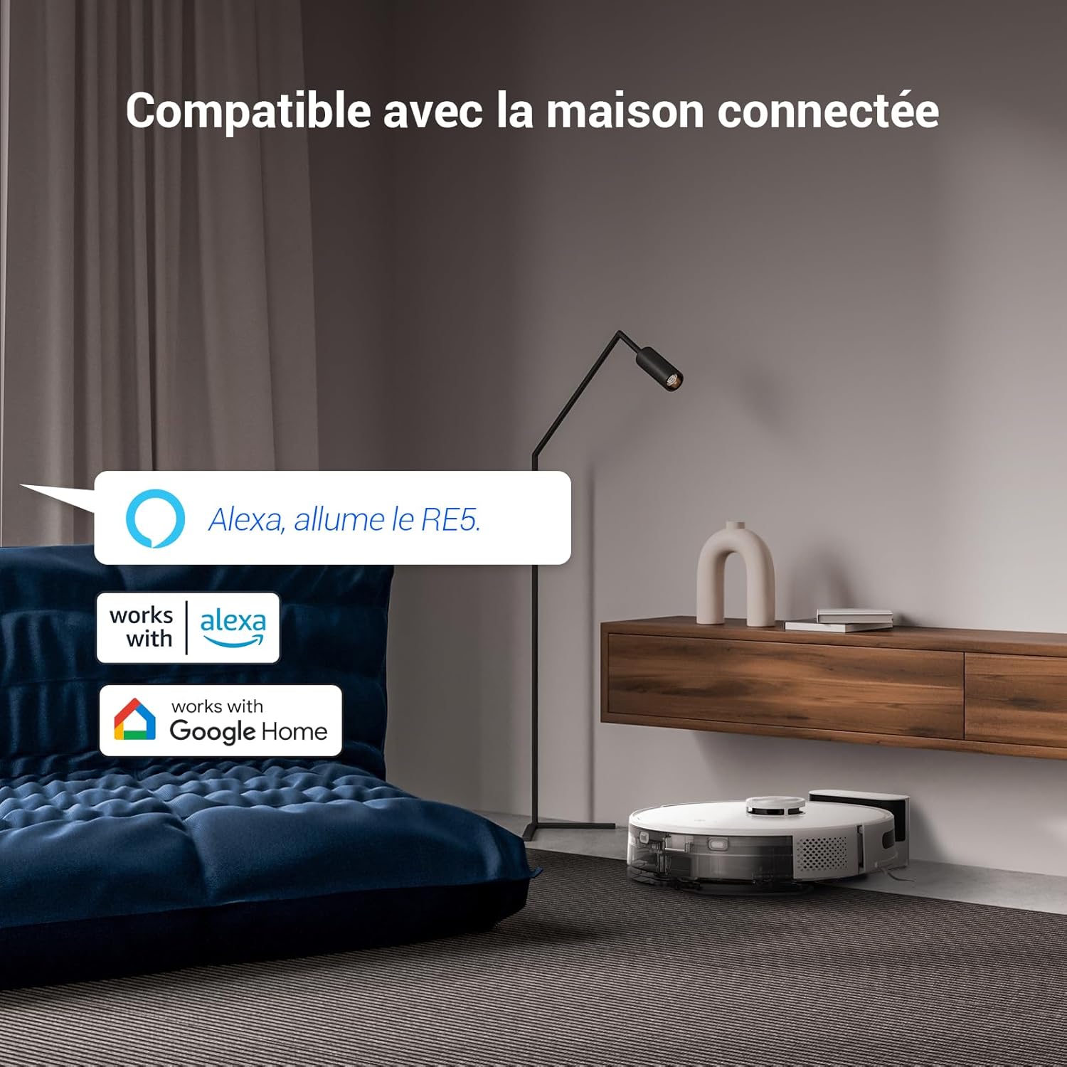 - 【Personalized Cleaning with Smart Control App】In addition to quickly mapping your home, the RE5 also intelligently adapts to daily changes, providing a bespoke cleaning experience for every home. With the EZVIZ app, you can easily customize floor plans for different areas and rooms, or set up cleaning missions for the whole house. Hands-free control via third-party voice assistants like Alexa