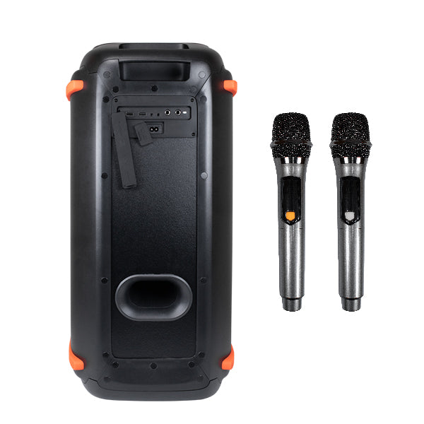 Wireless Microphones: Comes with two wireless microphones, perfect for karaoke sessions and announcements.