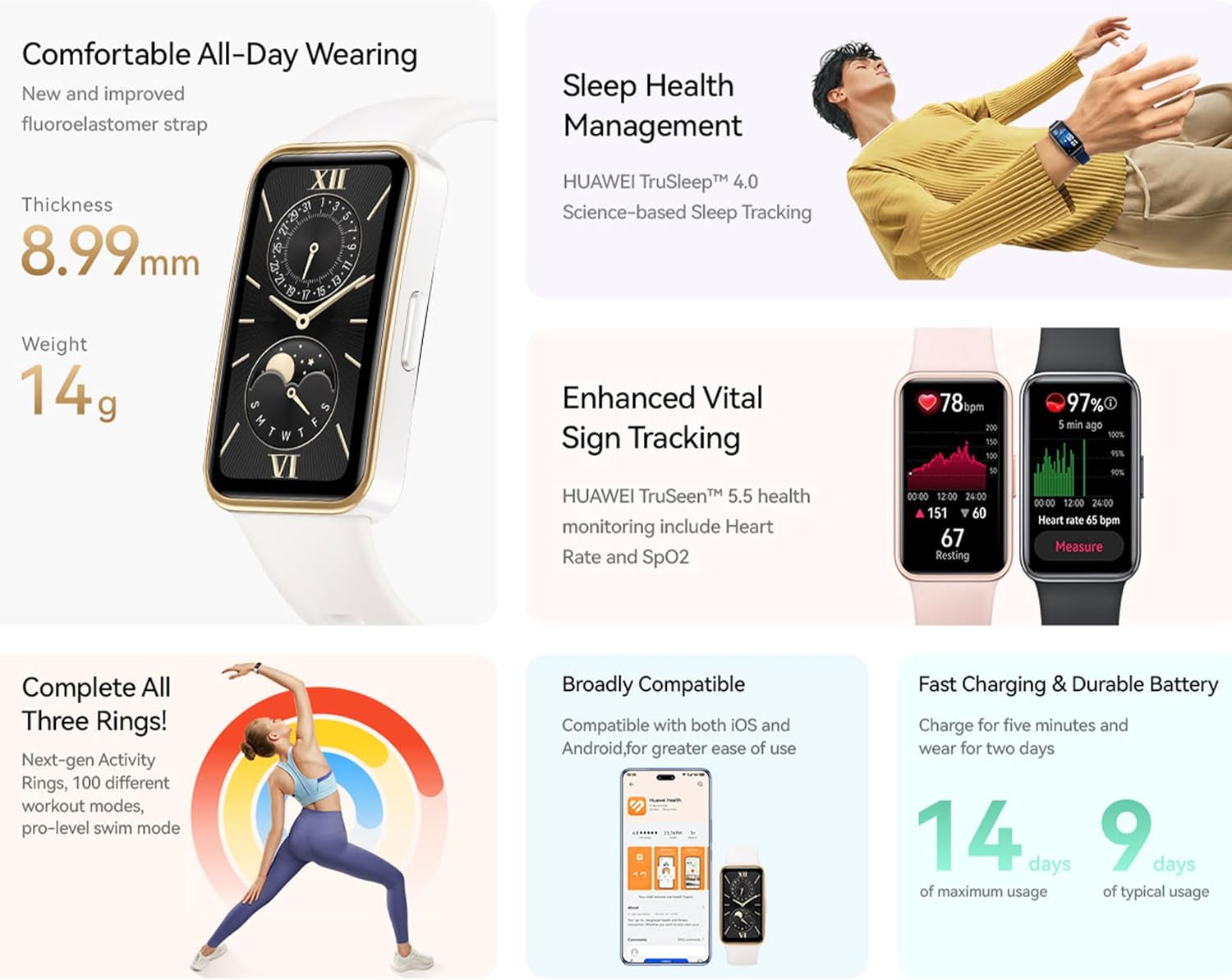 - HUAWEI TruSleep 3.0 tracks every second of sleep and provides the tools and tips you need to sleep well every night