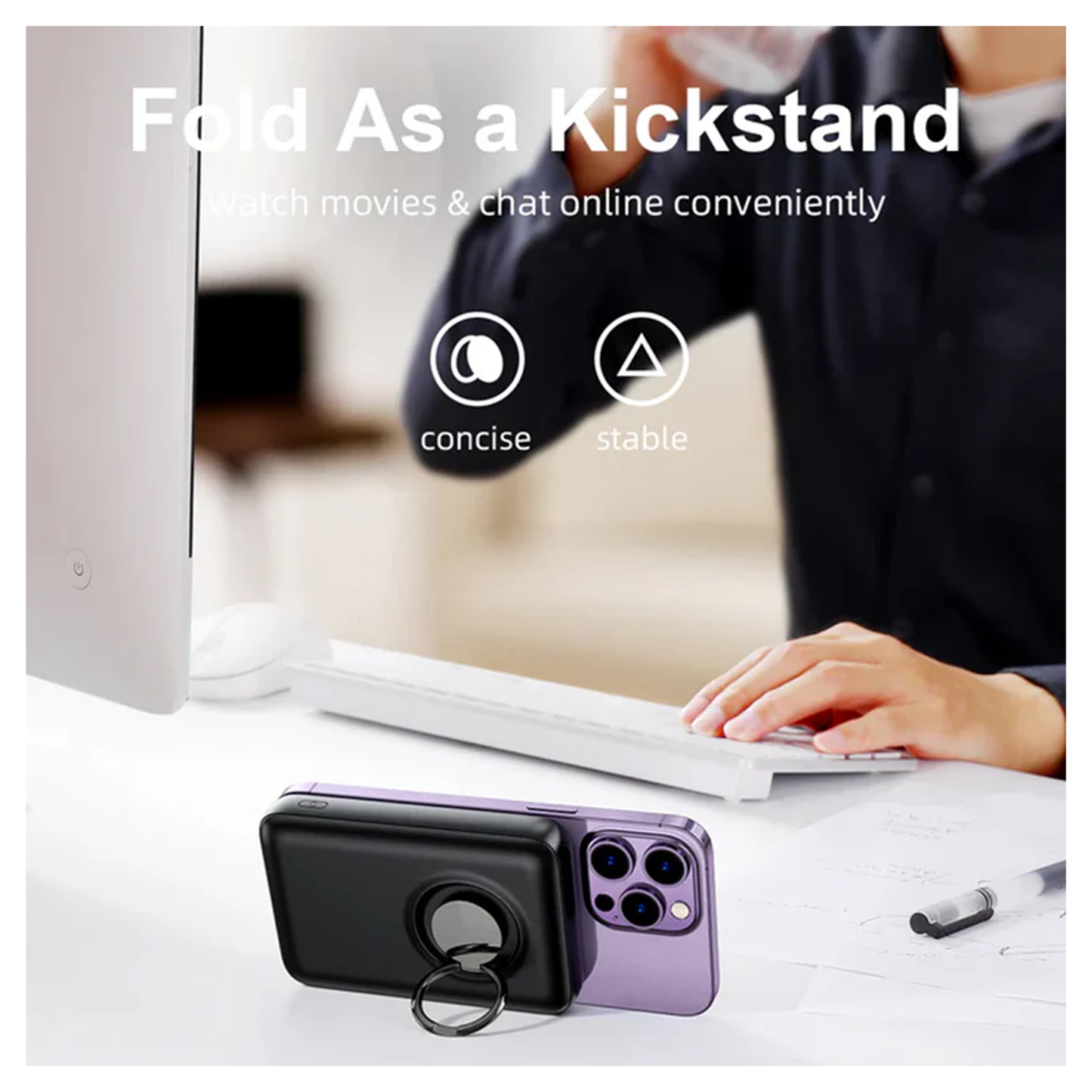 The Joyroom JR-W050 Magnetic Wireless Power Bank is designed to combine function with elegance. Featuring a powerful 10000mAh battery and 20W fast charging capabilities, this portable charger ensures that your devices stay powered.