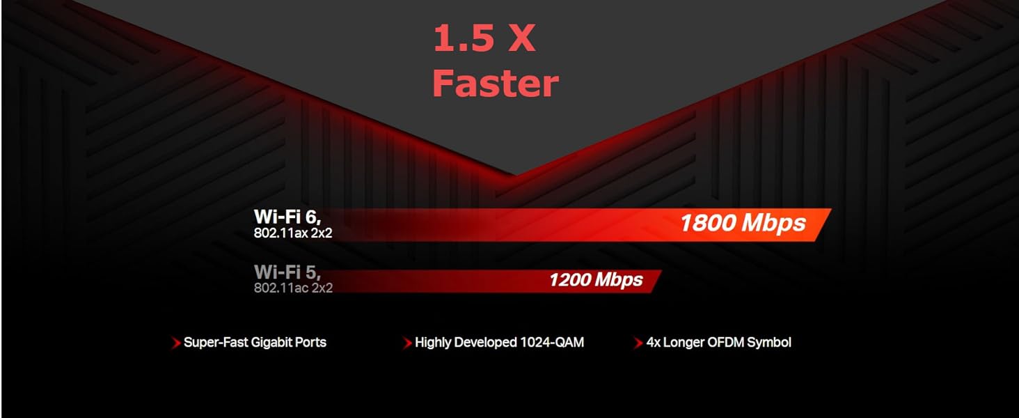 - Next-Gen WiFi 6 Speeds – Optimal WiFi 6 speeds reaching up to 1.8 Gbps (1201 Mbps on the 5 GHz band and 574 Mbps on the 2.4 GHz band)