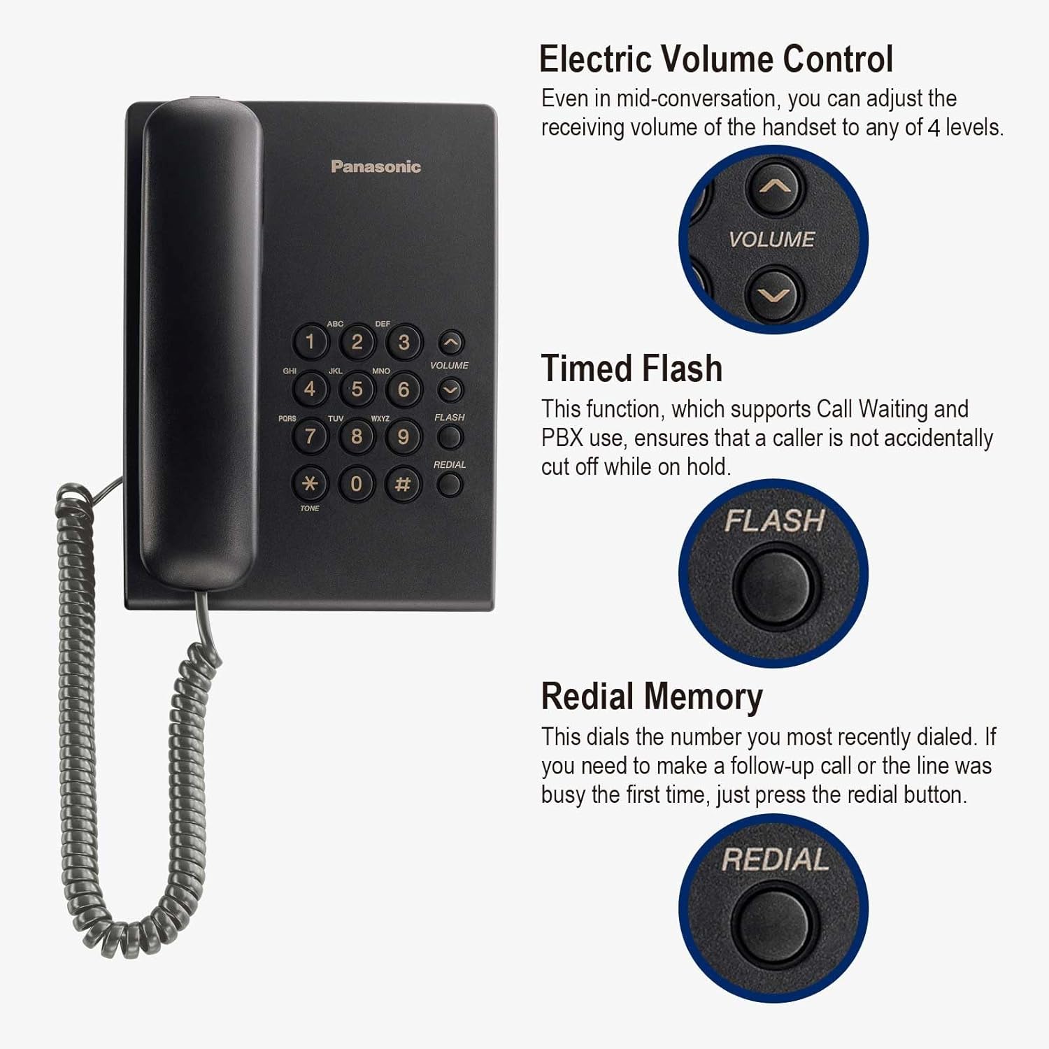 Panasonic KX-TS500FX Integrated Corded Telephone, Black