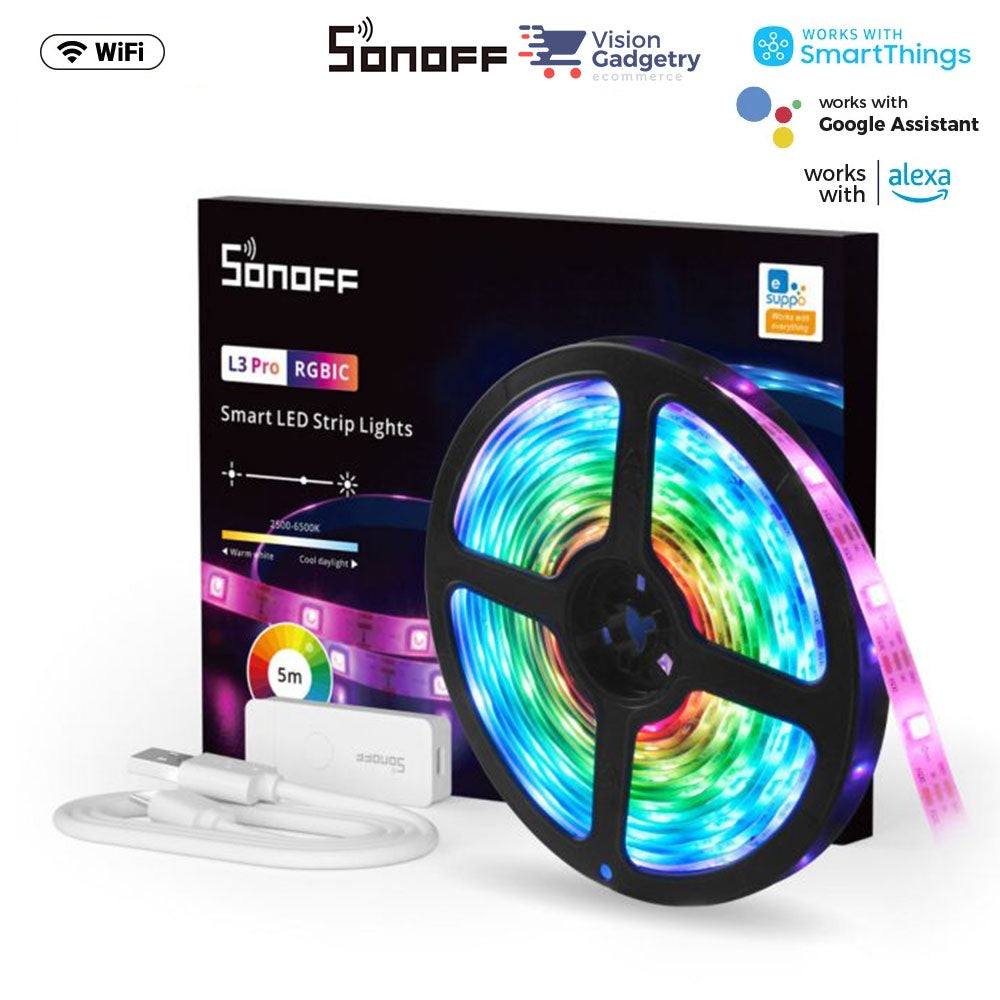 Elevate your home lighting with the SONOFF L3 Pro RGBIC Smart LED Strip Lights, and experience a new level of customization and ambiance that adapts to your lifestyle.