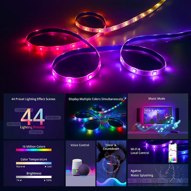 RGBIC Technology: Unlike traditional RGB strips that display a single color at a time, the L3 Pro features built-in independent chip (IC) control, enabling each LED to display different colors simultaneously. This results in a more dynamic and colorful lighting experience.