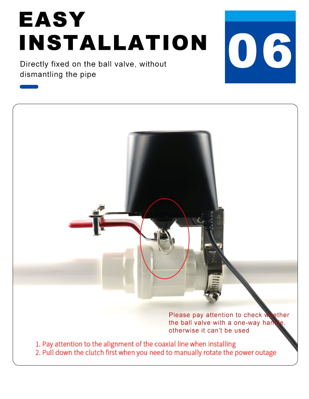 Our smart water valve is no pipe is required, and it is easy to install, convenient to use and operate