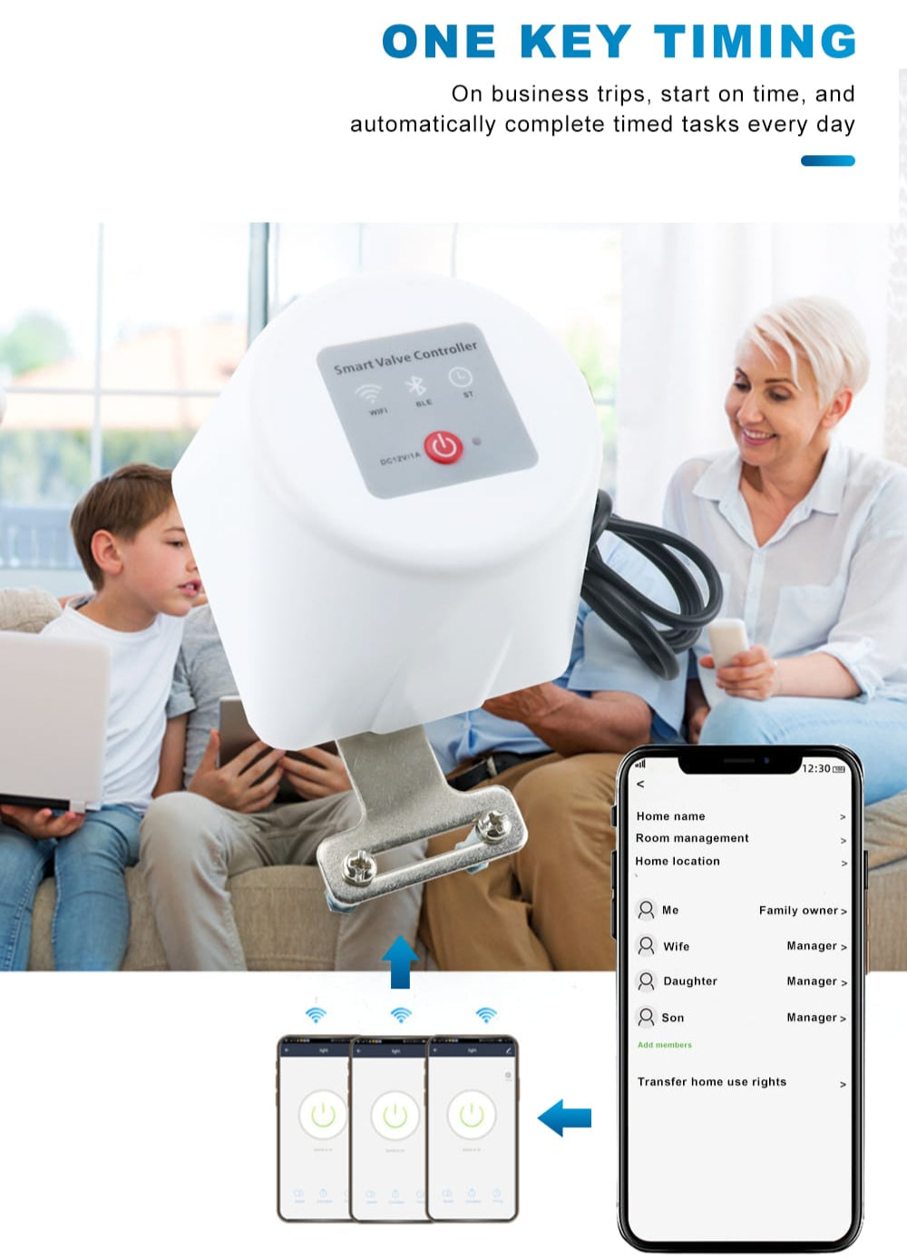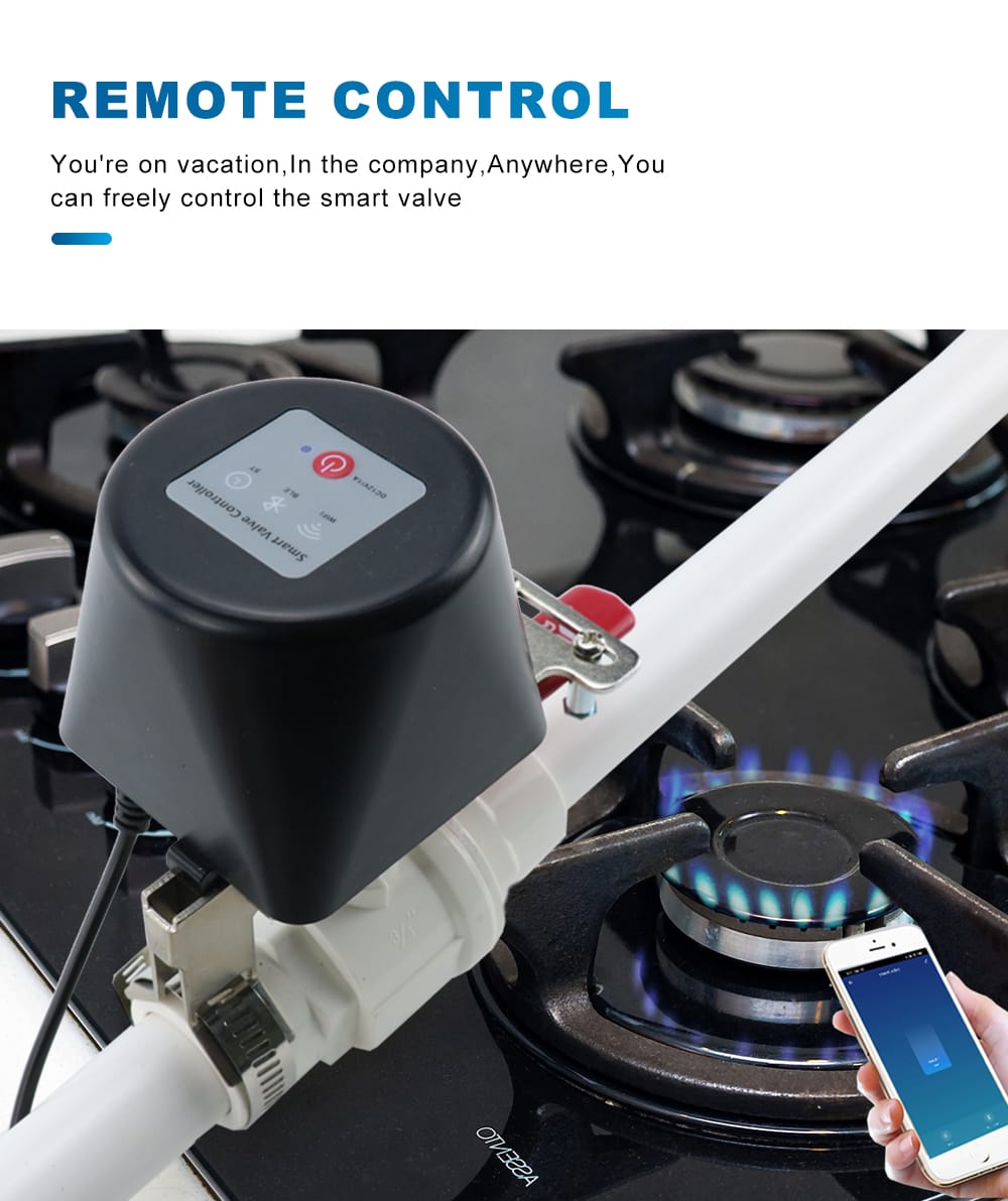 The smart valve controller is fully compatible with wireless networks, you can remotely control the valve via your smartphone