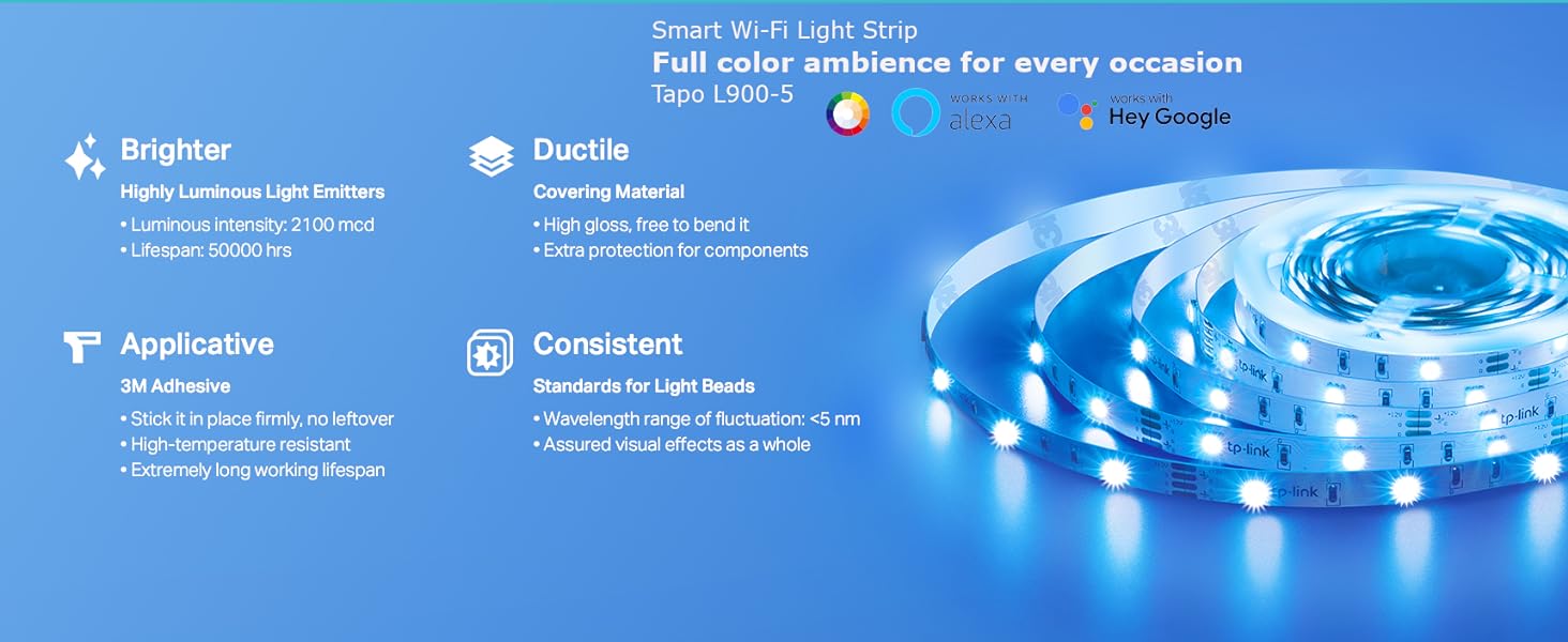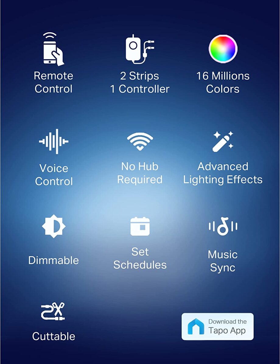 - Connect It Your Way - Use it with your smart assistant, a hub, or connect directly to the Tapo App. Control the Light Strip however you want.