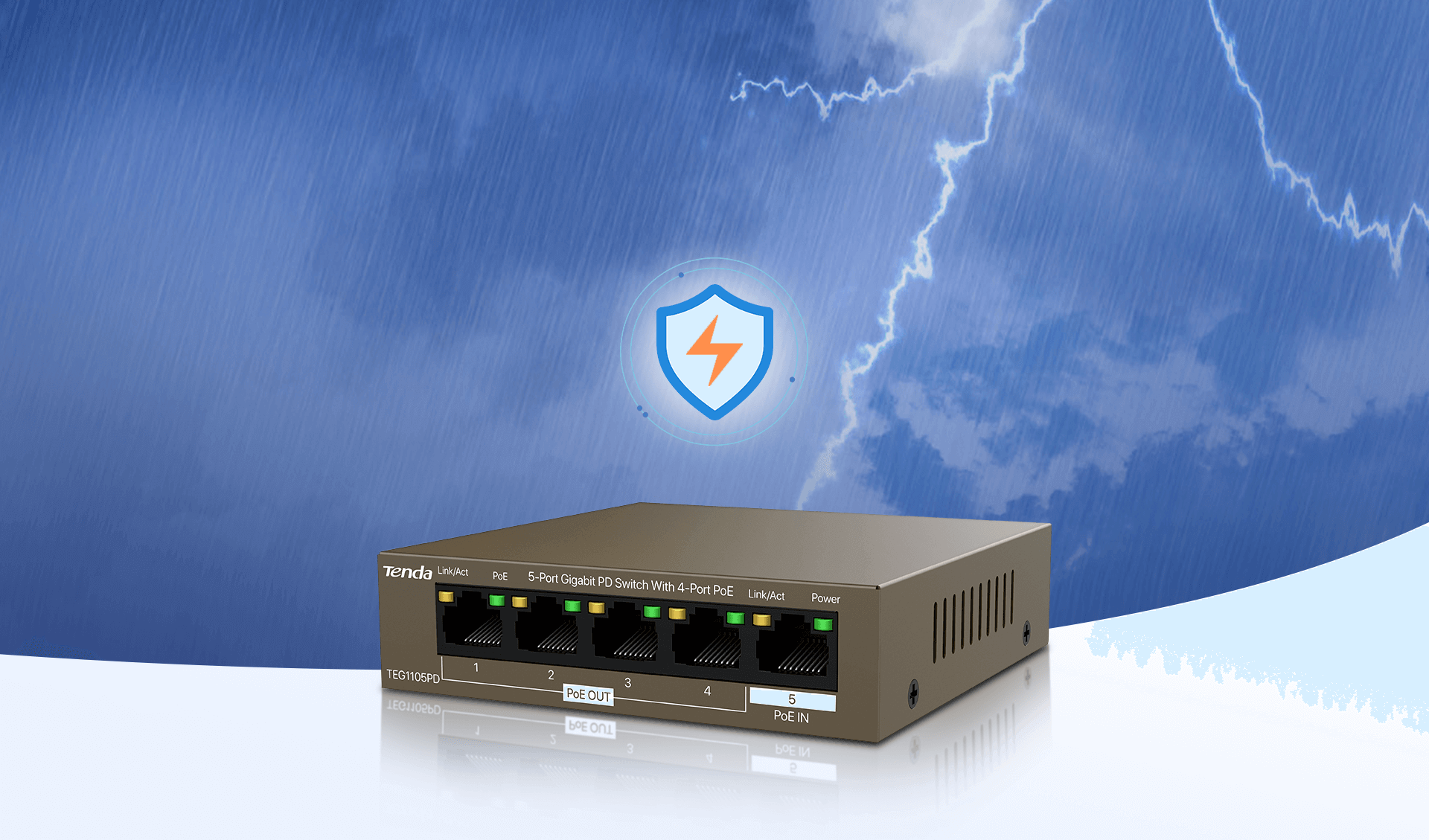 Tenda 5-Port Gigabit PD Switch With 4-Port PoE (Powered By POE Uplink) /TEG1105PD