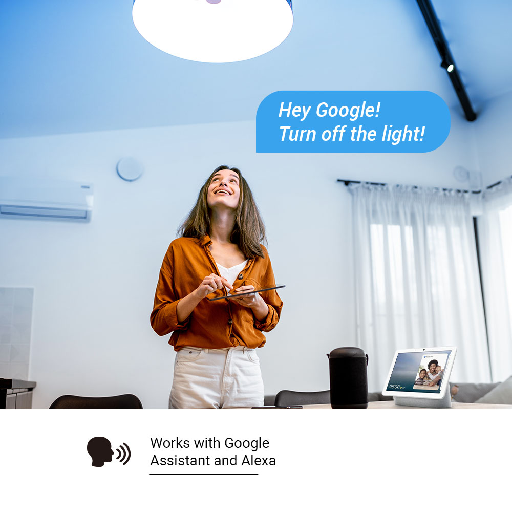Activate and adjust the light via voice assistant such as Alexa/Google Home, to control the on/ off, color temp/brightness and etc, making you life easier by hands free.