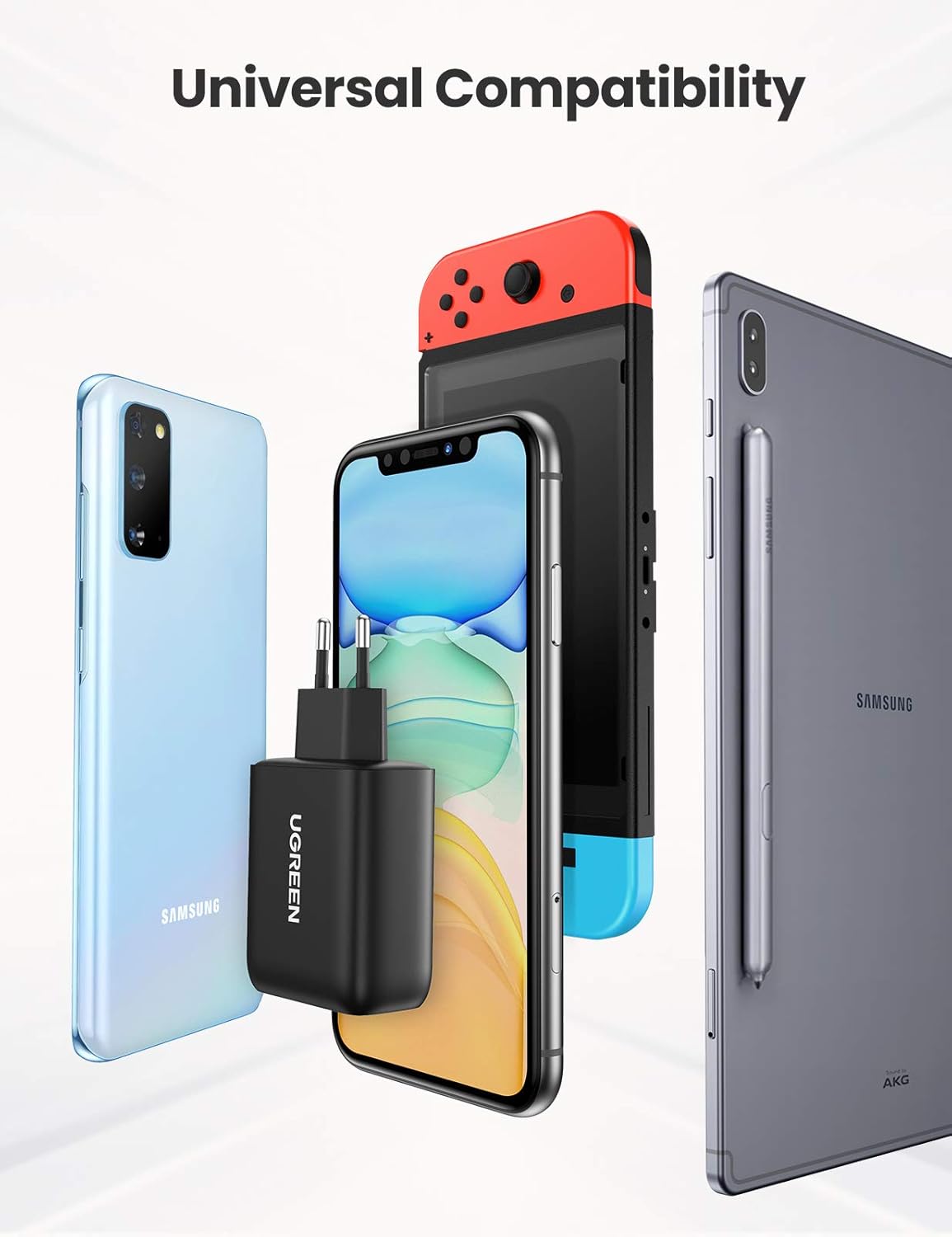- Portable and handy: Compact size: 98 x 54 x 28 mm, we can take this charger anywhere. It fits perfectly in your trouser pocket or backpack. In addition, it supports the input power 100-240V. Ideal for on the go.