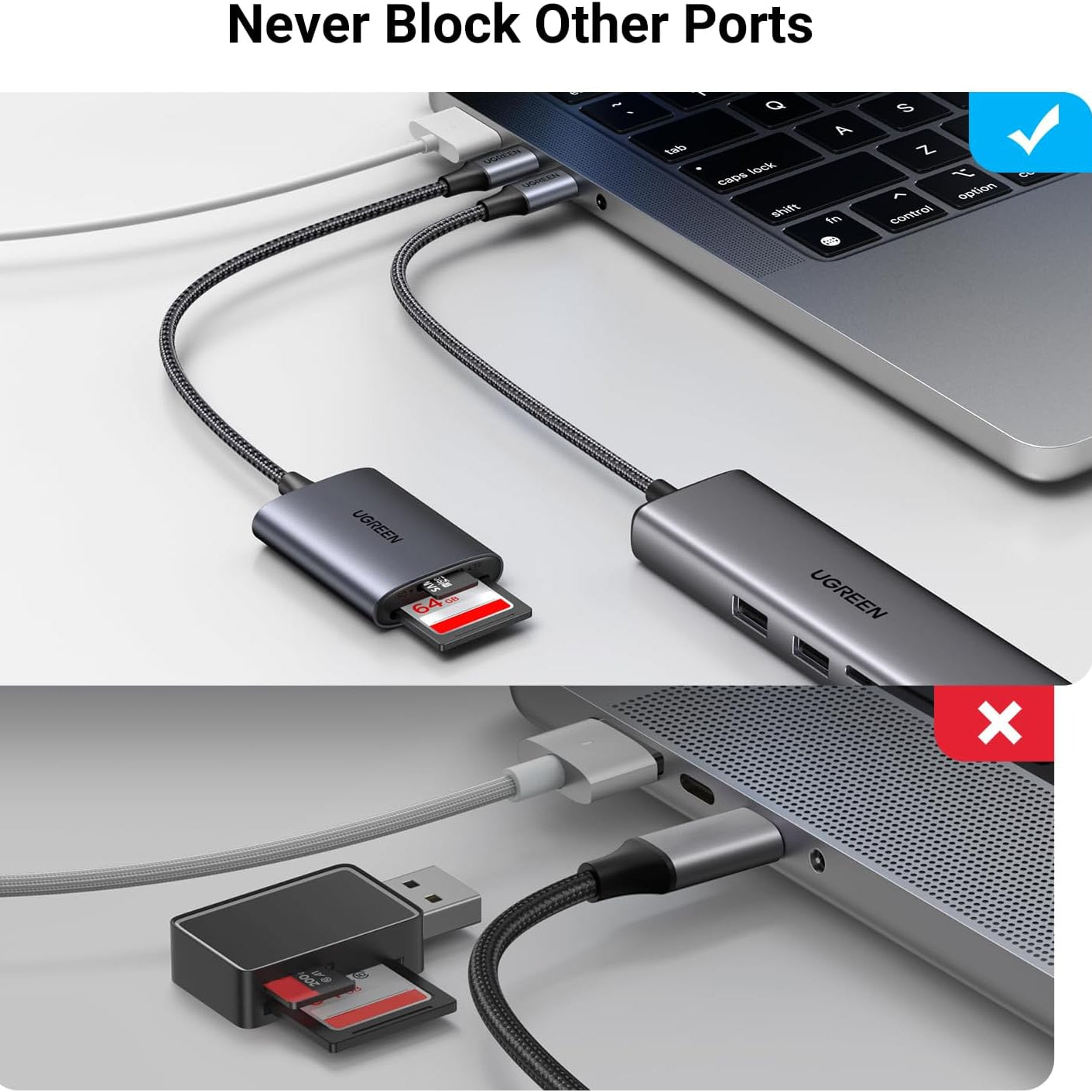 5Gbps High-speed: UGREEN SD Card Reader USB C supports data transfer up to 5Gbps and memory card capacity up to 2TB, 10X faster than USB 2.0 (480Mbps), which allows you to transfer an HD movie or files in seconds