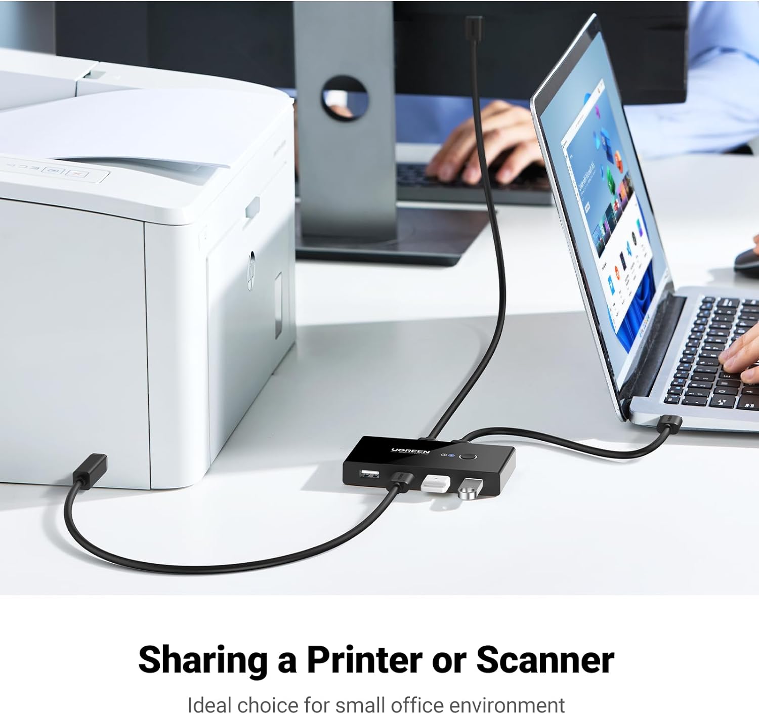 - One-Botton Switch & LED Light Indicator: You can easily switch between 2 computers with a single click on the button with LED indicating the active computer. UGREEN USB Switcher make switch effortless.