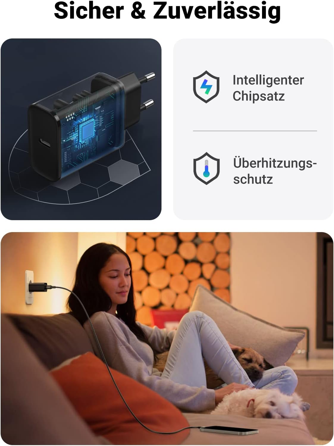 - Safe charging: Equipped with an intelligent chip to protect your devices from short circuit, over-voltage, overheating and over-current, it ensures you and your device. The fireproof ABS housing provides high temperature resistance for best heat dissipation.