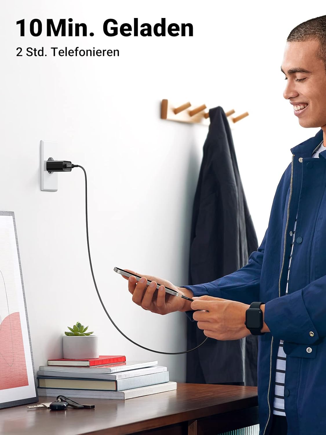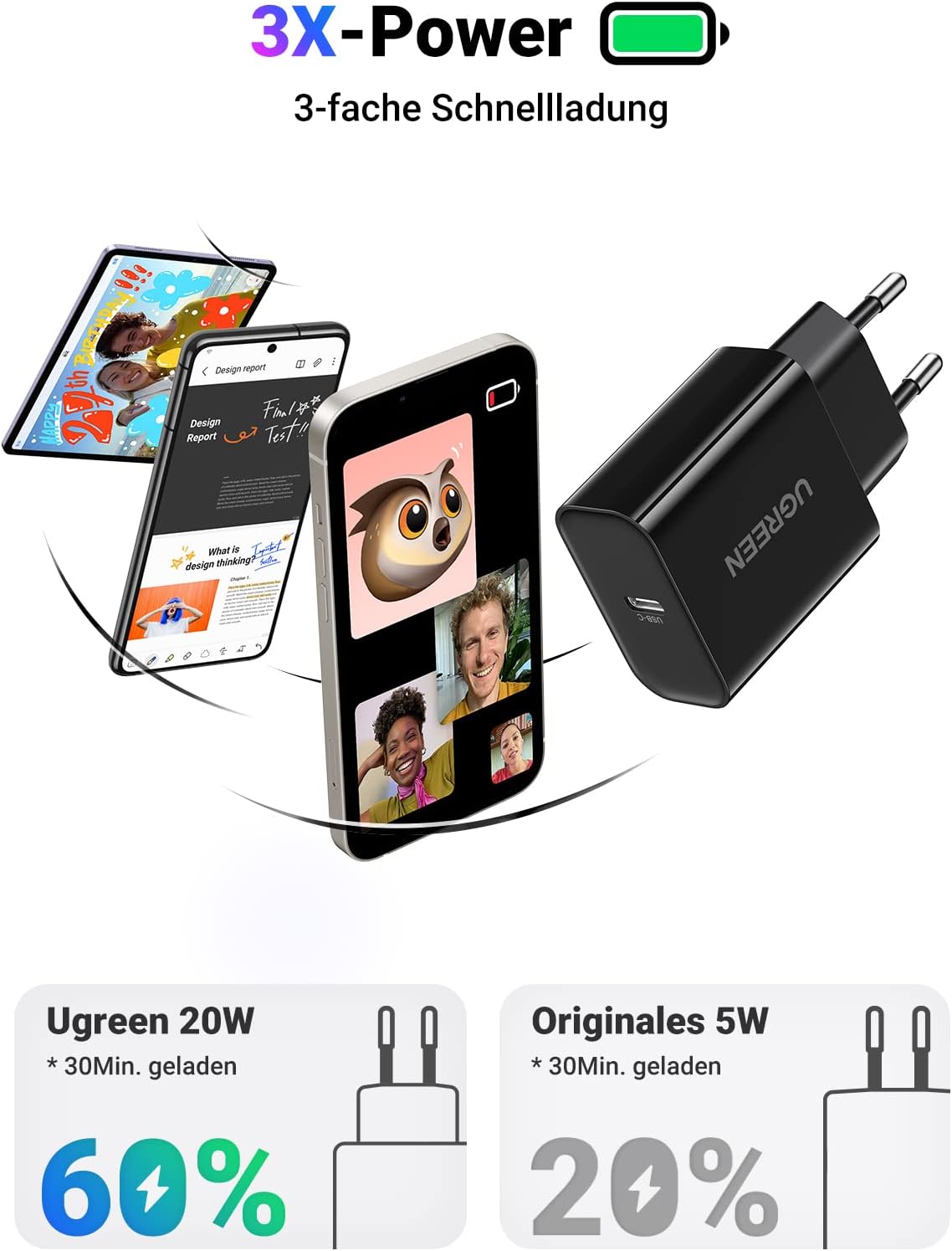 - [20W USB C Fast Charging] USB-C power supply allows you to charge your iPhone 14 from 0% to 60% in just 30 minutes. 10 minutes charged, 2 hours call.
