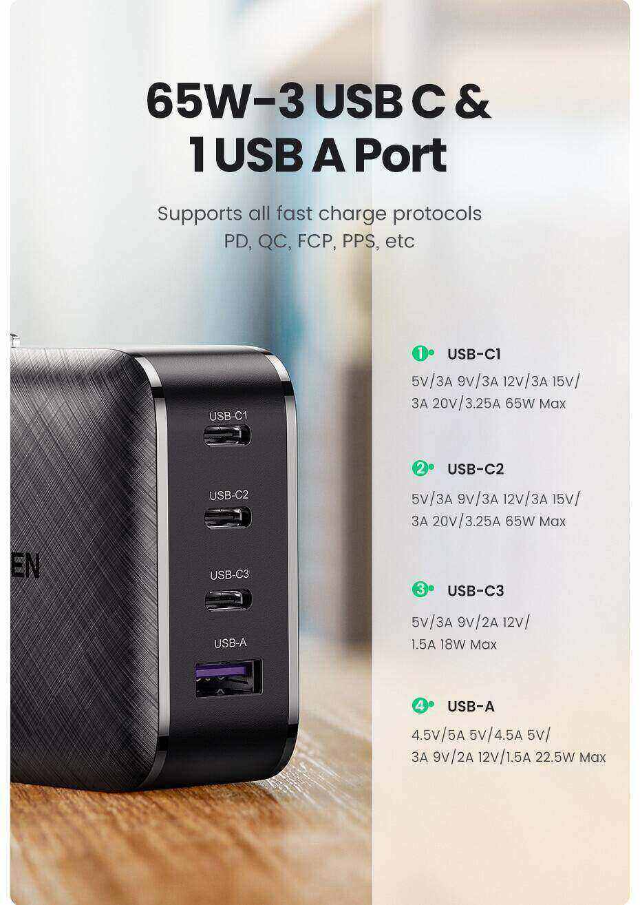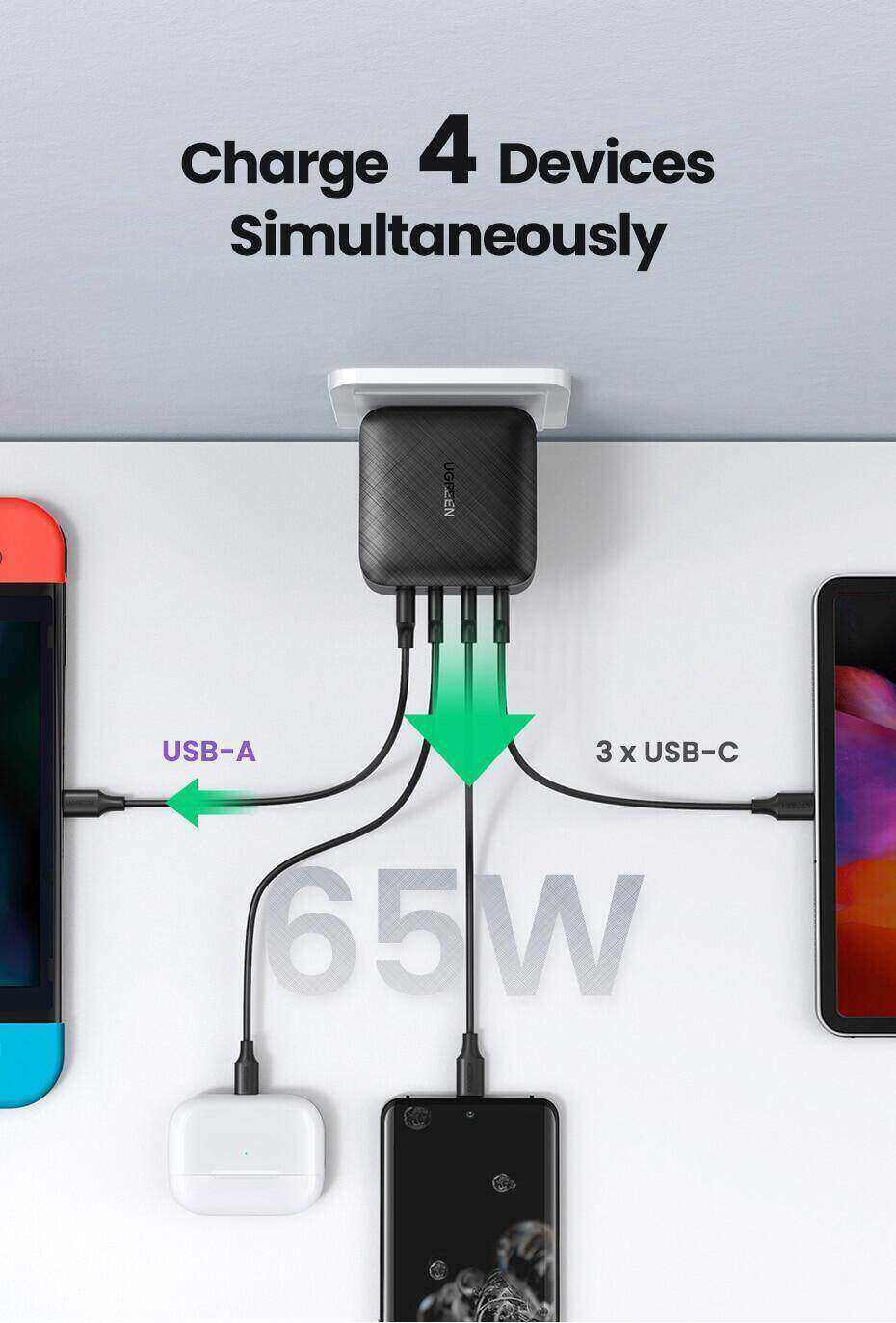 - The Only Charger You Need: Throw out those conventional chargers. This charger provides 65W of fast charging power. More than enough to fast charge a phone, tablet, or notebook from a single charger.