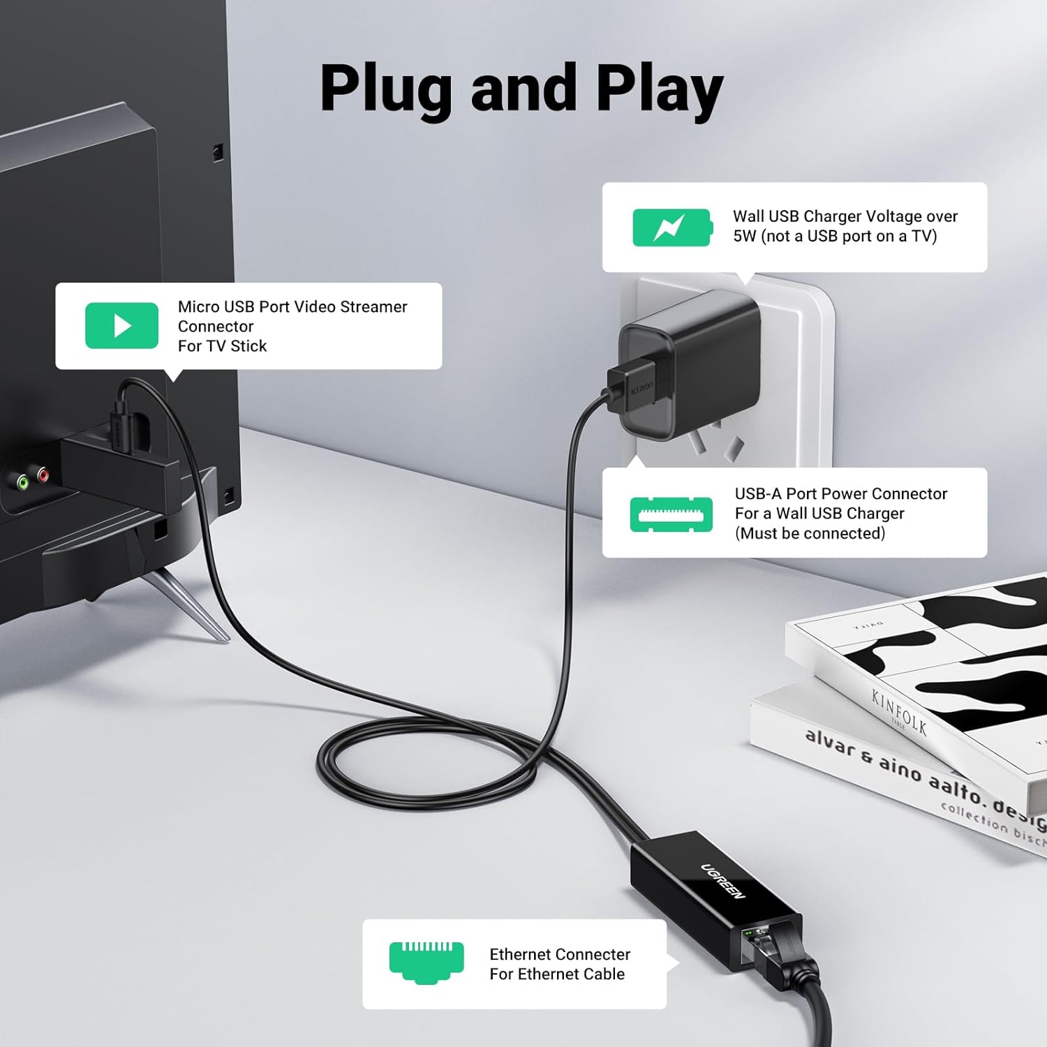 UGREEN Ethernet Adapter for TV Stick / CHROMECAST (Black) /30985