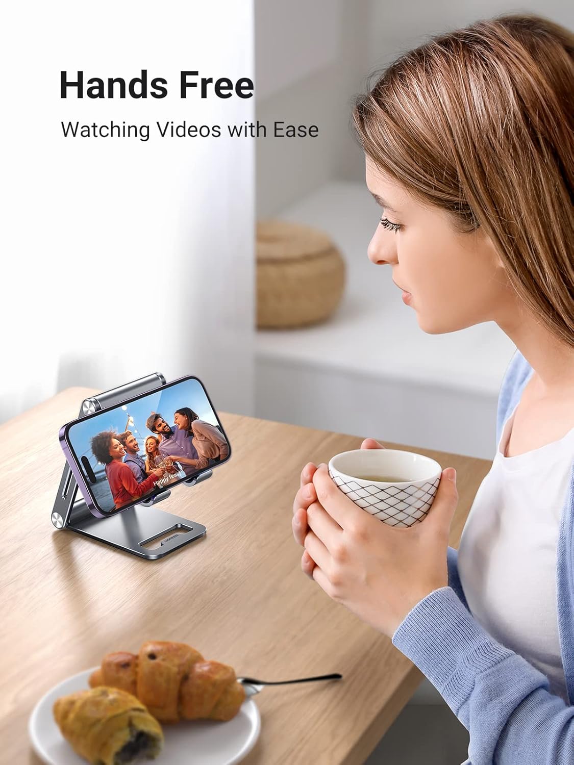 Full Padding Base for Enhanced Stability: The cell phone stand holder features full anti-slip silicone padding that prevents your smartphone from slipping, so you can watch videos without worry of a fall or flip