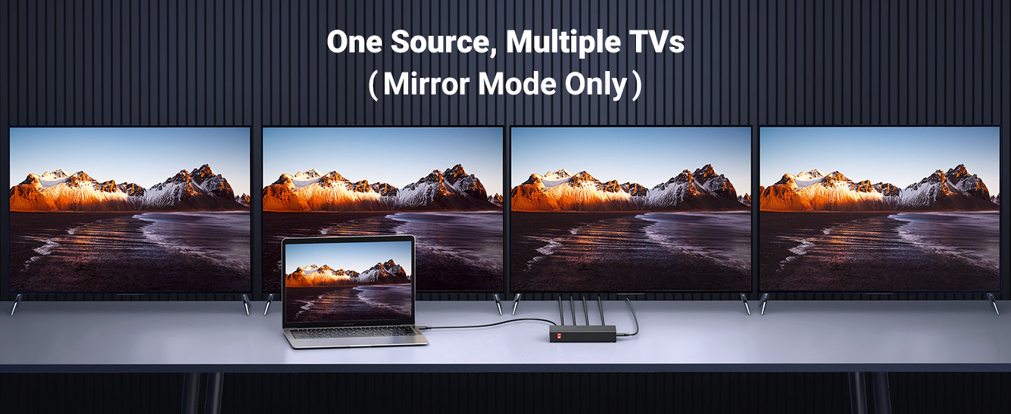 - 【One Source, Multiple TVs】If you have one source, and want to send the signal of source to multiple TVs in different rooms, or in the same room, UGREEN 1 in 4 out HDMI splitter is designed for you.