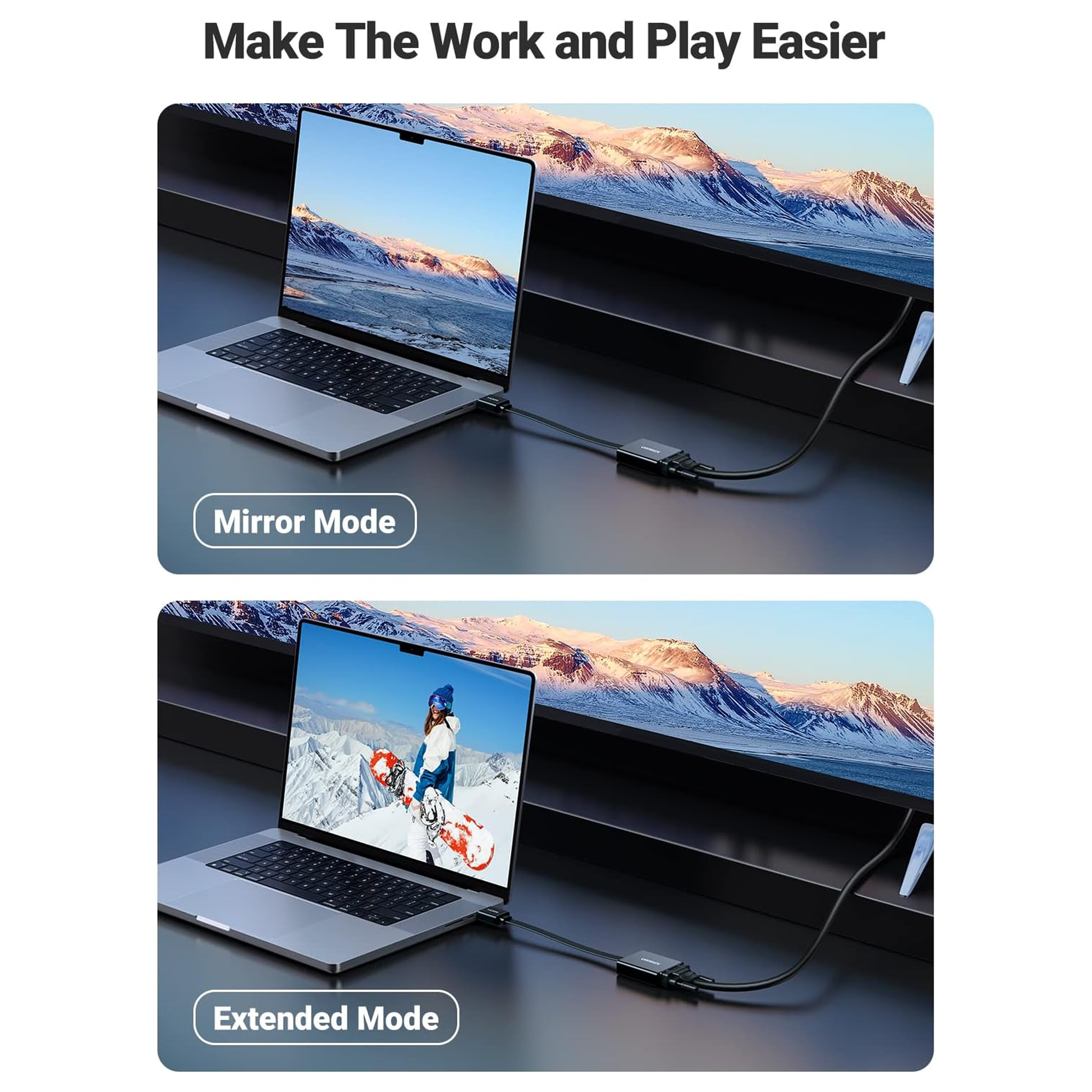 Ugreen HDMI to VGA adapter with audio enables you to connect your new NoteBook, Laptop, Chromebook, Rasberry Pi, HD DV with HDMI interface to projector, LCD, TV & Monitor with VGA interface for big screen viewing.
