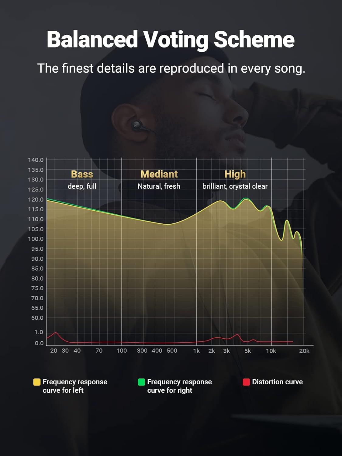 - High Fidelity Stereo Earphones: the UGREEN HiTune Earphones built-in high-performance speakers unit for extended frequency range, lower distortion, high performance, and noise isolating ear tips eliminate ambient noise. Provide perfect listening pleasure for music, video, or phone calls.