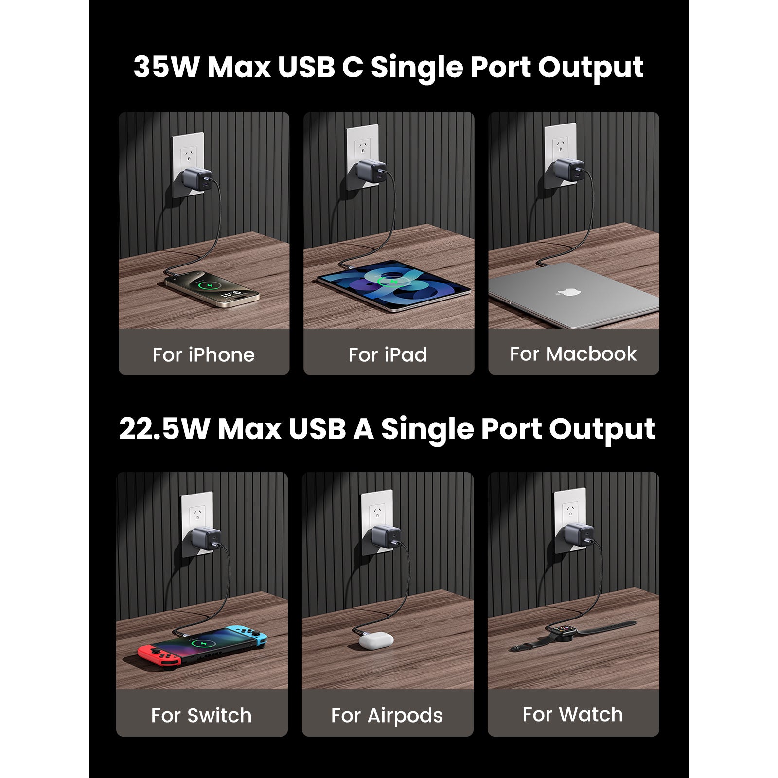 UGREEN Nexode 35W USB C Charger 2-Port Power Supply GaN II Tech Fast Charger /15539