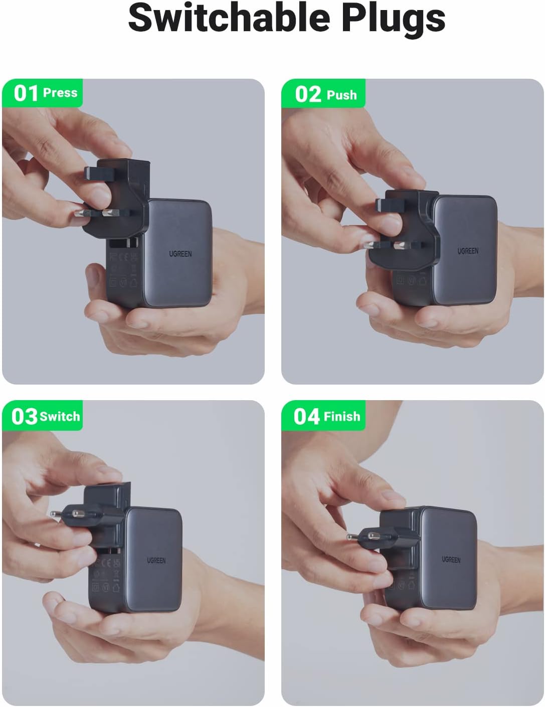 - Ideal for Travelling: The EU, US, UK switchable plugs make the USB C charging block very helpful and suited for worldwide travel, and it supports worldwide universal voltage of 100V-240V