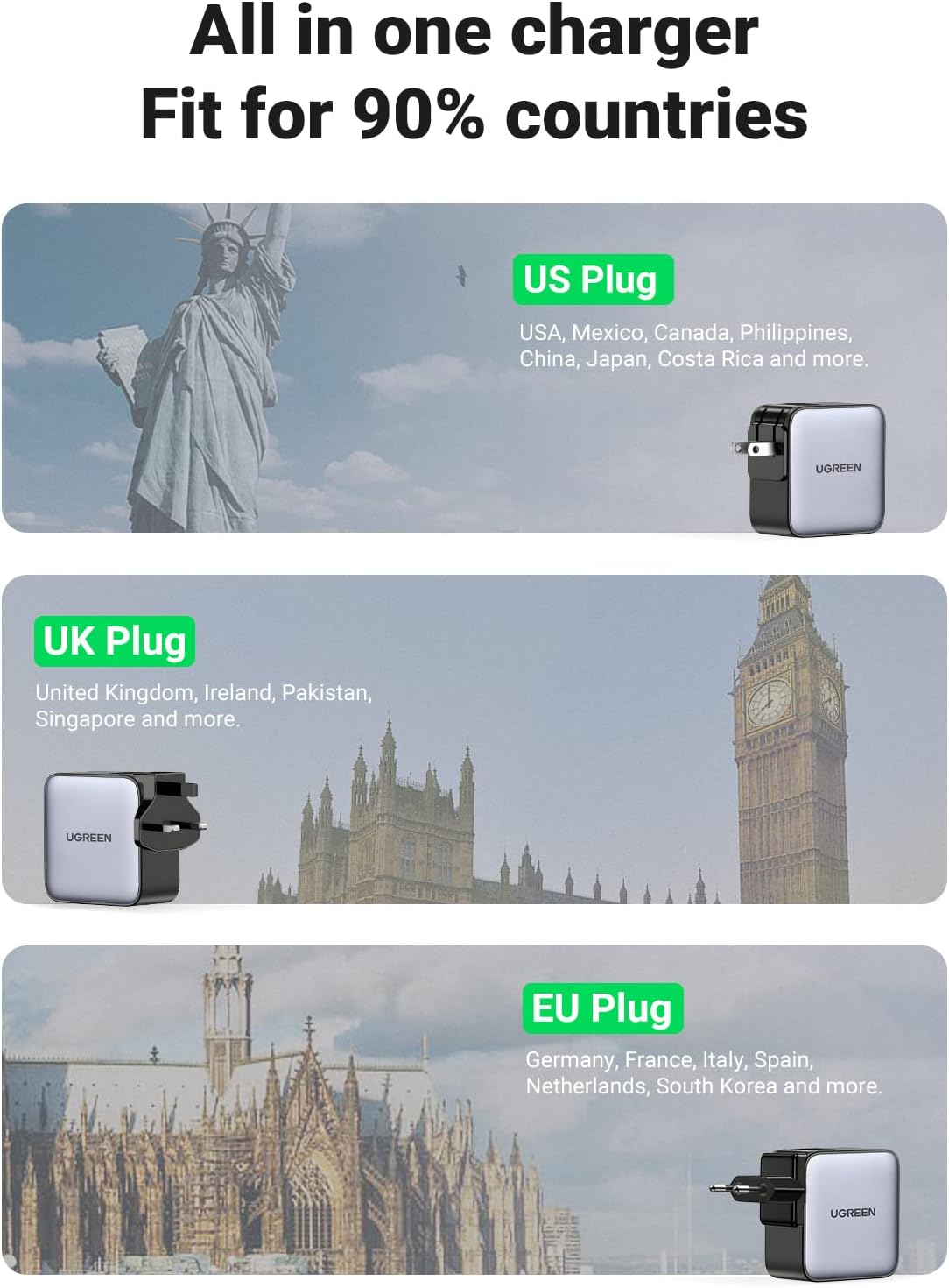UGREEN Nexode 65W 3 Port Travel Charger GaN Fast International Charger / 90409