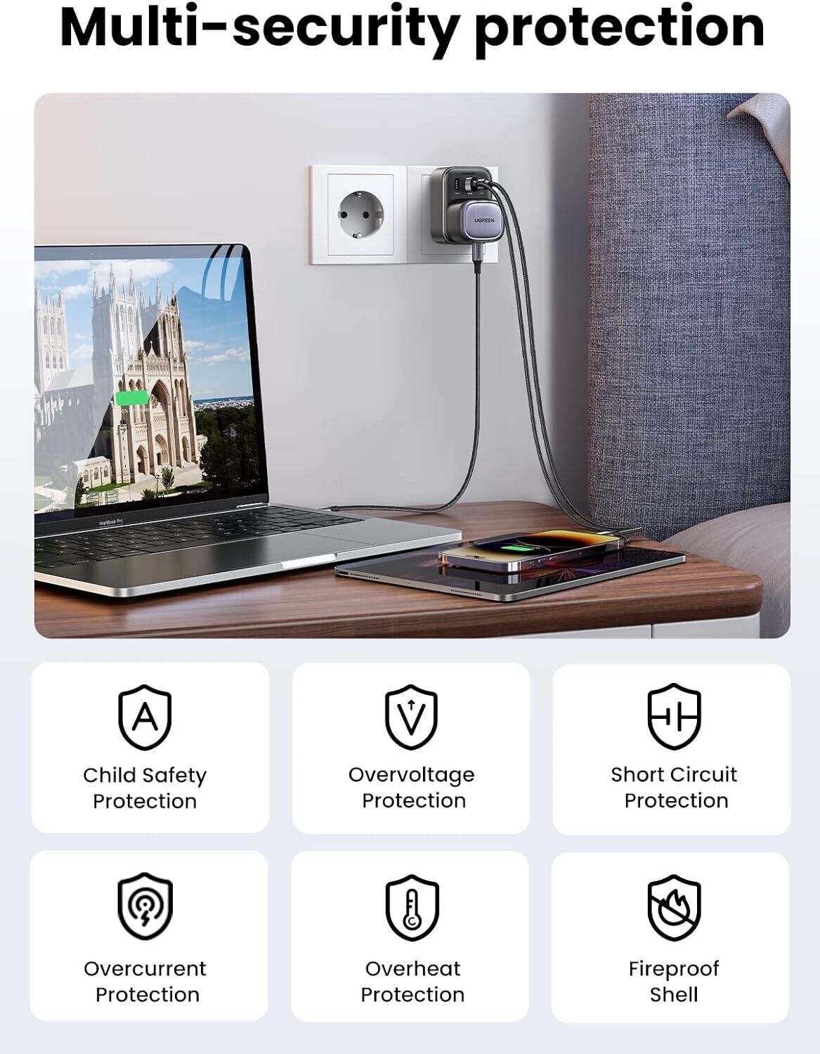 - 【Reliable Charge, Safe Protection】: UGREEN Travel Charger Plug protects your devices from short circuits, overvoltage, overheating, and overcharging, ensuring you and your devices with safe and stable charging.