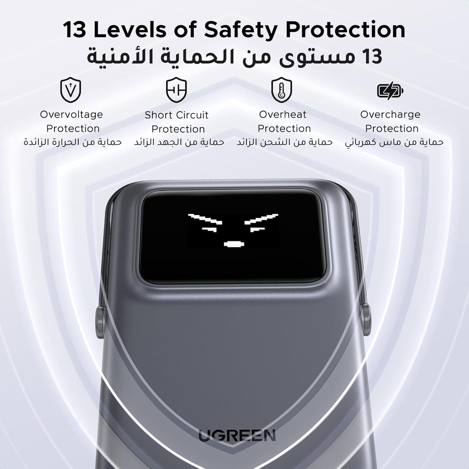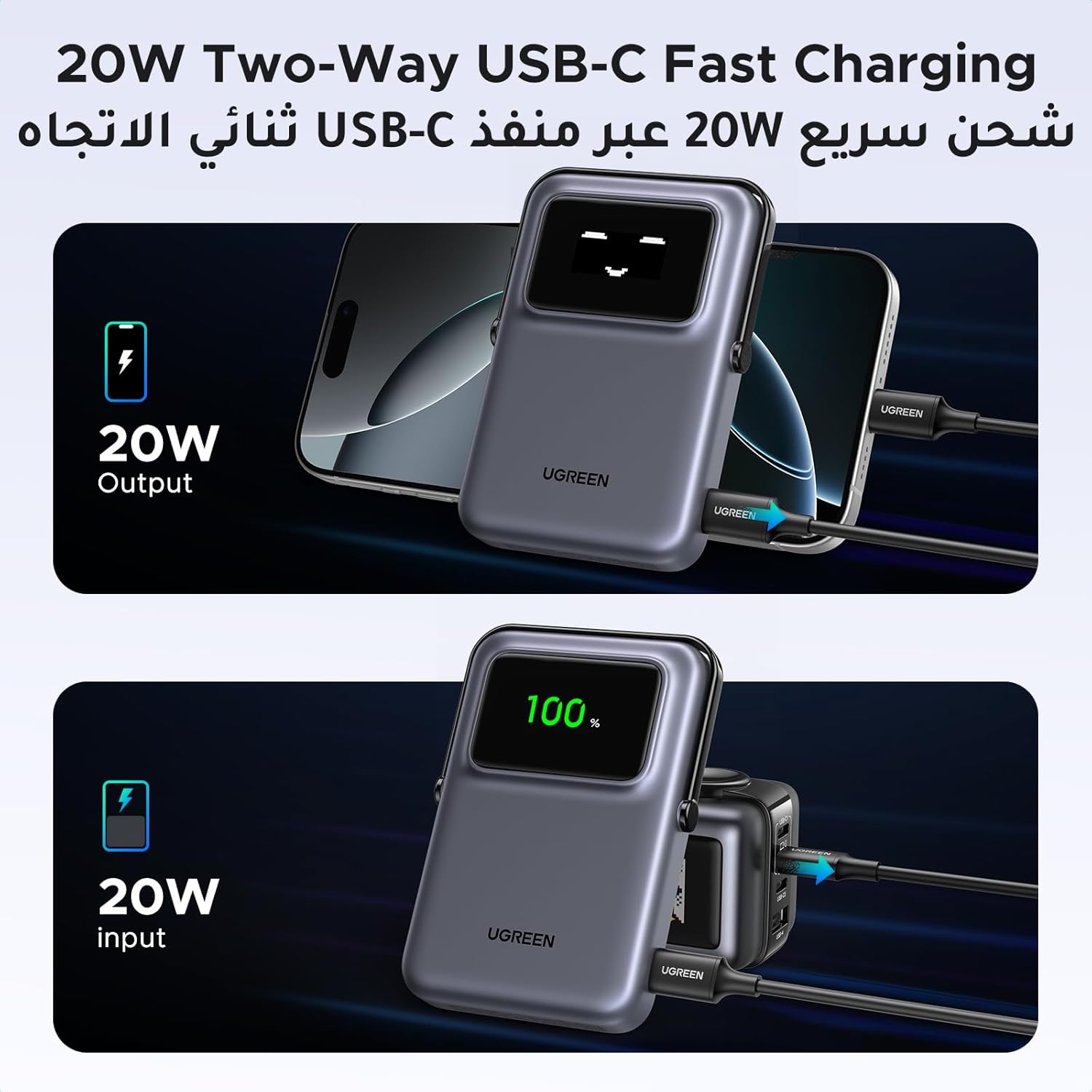Qi2 Technology Ugreen magsafe power bank is equipped with cutting-edge 15W wireless charging capabilities, utilizing the latest Qi2 wireless charging technology. Compared with other 7.5W magsafe power bank, this feature makes charging faster and the magnetic attraction more stable.