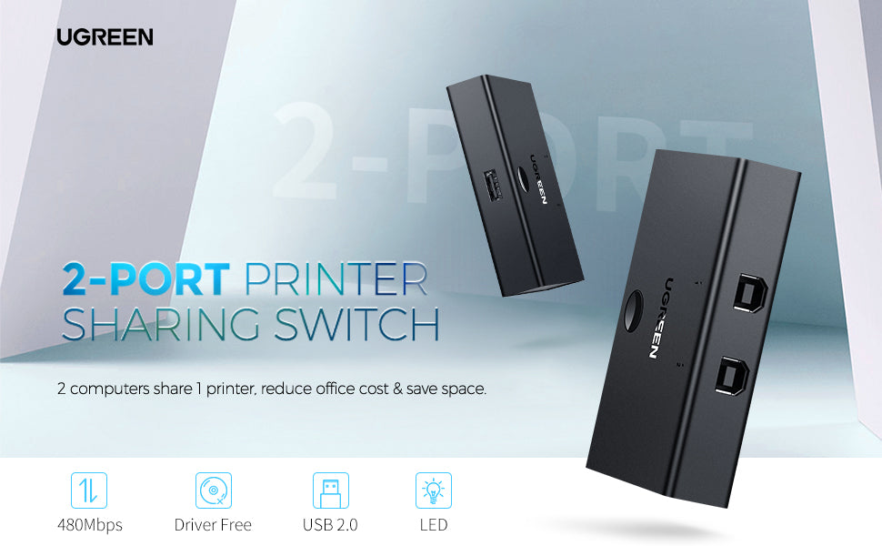 Ugreen 2 in 1 out USB 2.0 sharing switch is ideal for enabling 2 computers to share one USB device. Simply press the switch button to change the controlling computer. Without the need for disconnecting and reconnecting the USB cables. Easy and time-saving.