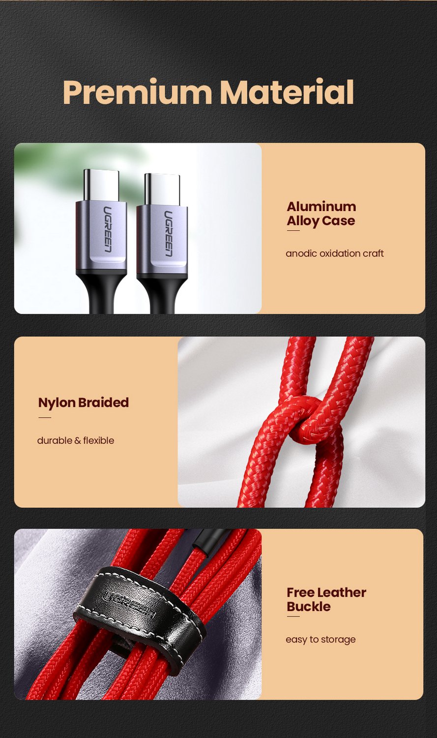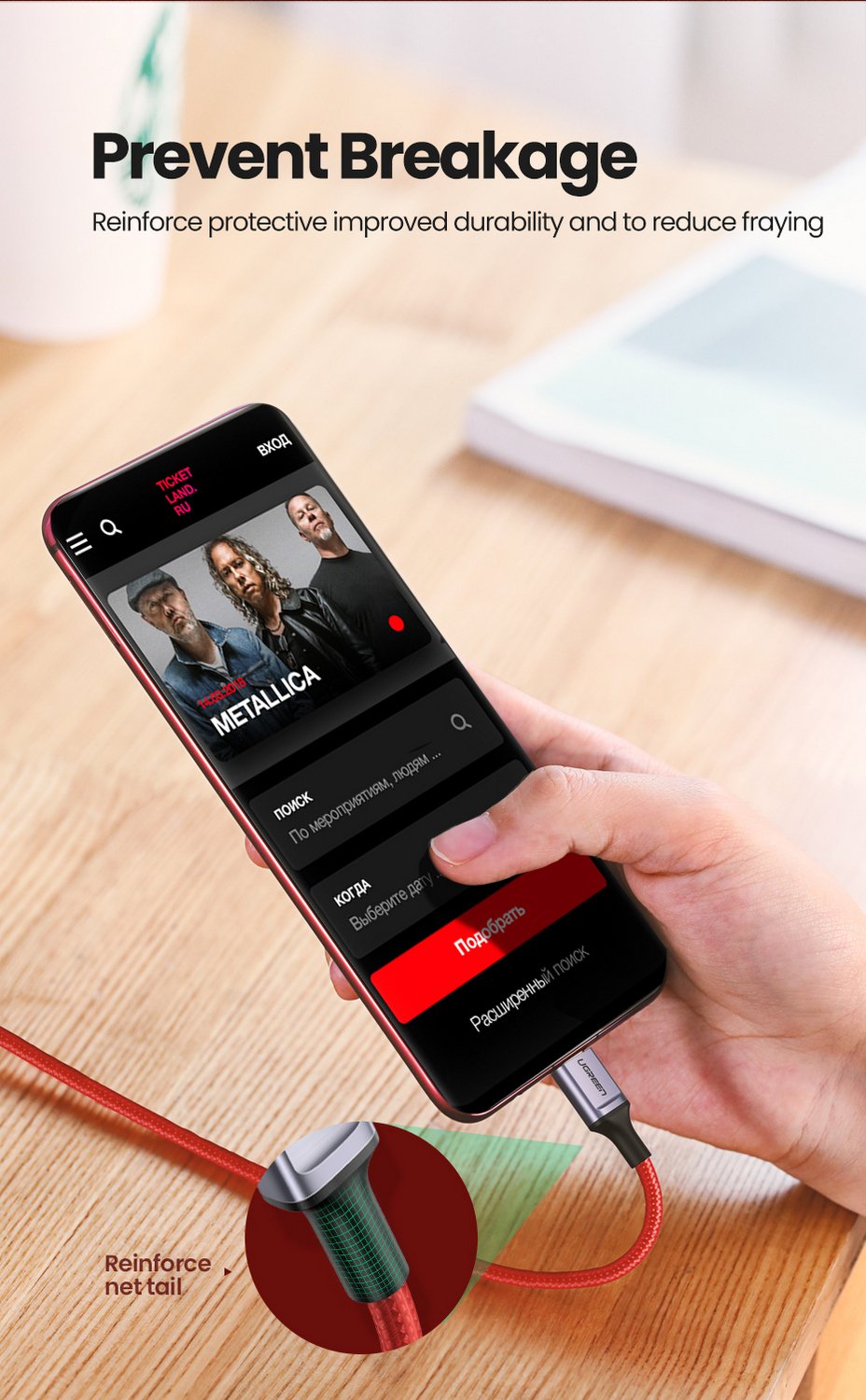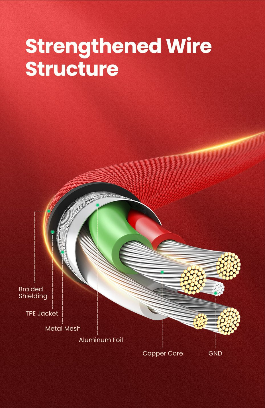 The reinforced construction of the Ugreen US294 cable, made of TPE, nylon and aluminum alloy, guarantees its durability even with intensive daily use. In addition, the elegant red color gives the device a unique character.