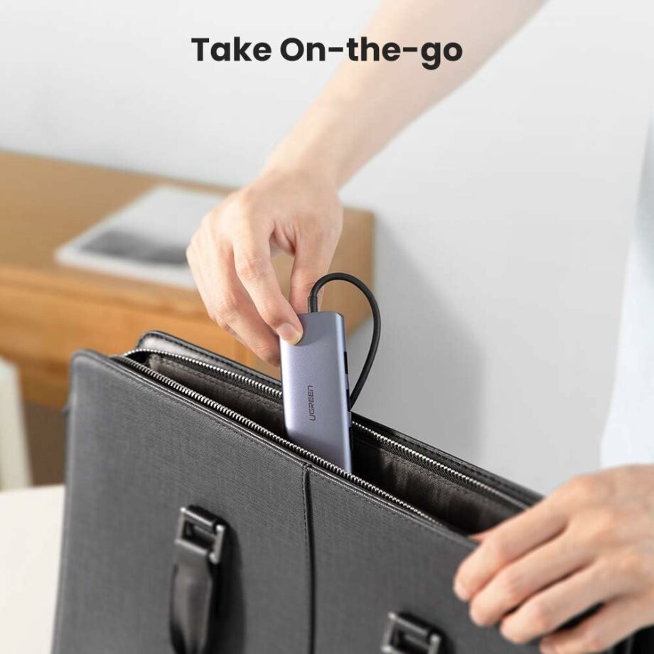 - With a unique groove for cord management, this USB c hub can be easily put into your laptop case or bag.
