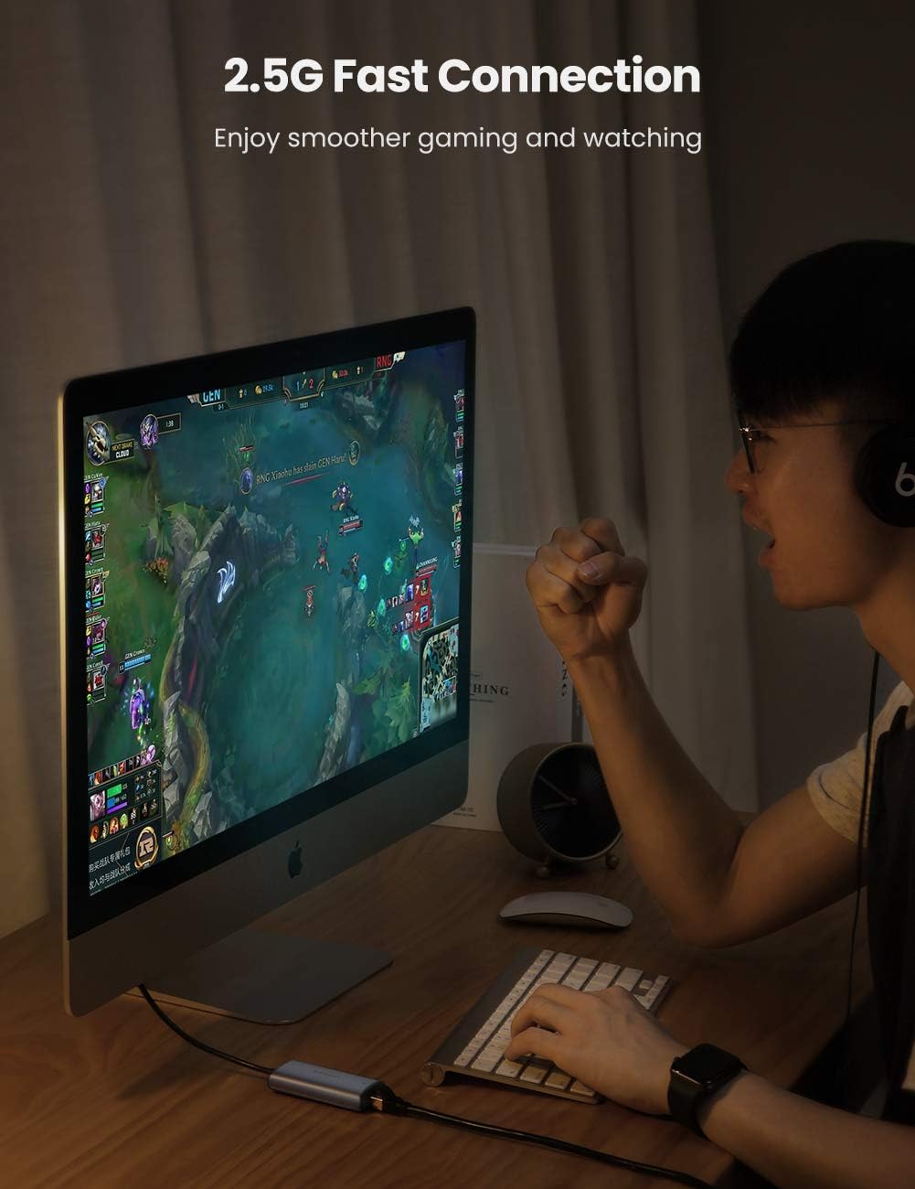 UGREEN USB Type C to RJ45 Network Adapter expands an ultra-fast 2.5Gbps(10/100/1000/2500Mbps) Gigabit Ethernet port to new USB-C/Thunderbolt 3 laptops that have been removed RJ45 LAN port. Meant to provide blazing and stable wired network connection.