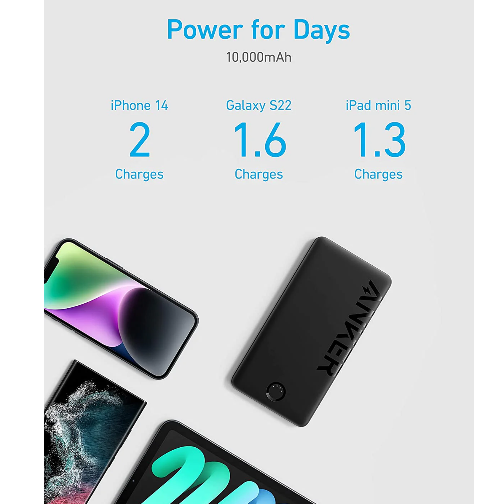 لا تنفد الطاقة أبدًا: تتيح سعة 10000 مللي أمبير في الساعة لبنك الطاقة هذا شحن جهاز iPhone 14 مرتين وجهاز iPad mini 5 الخاص بك حتى 1.3 مرة.