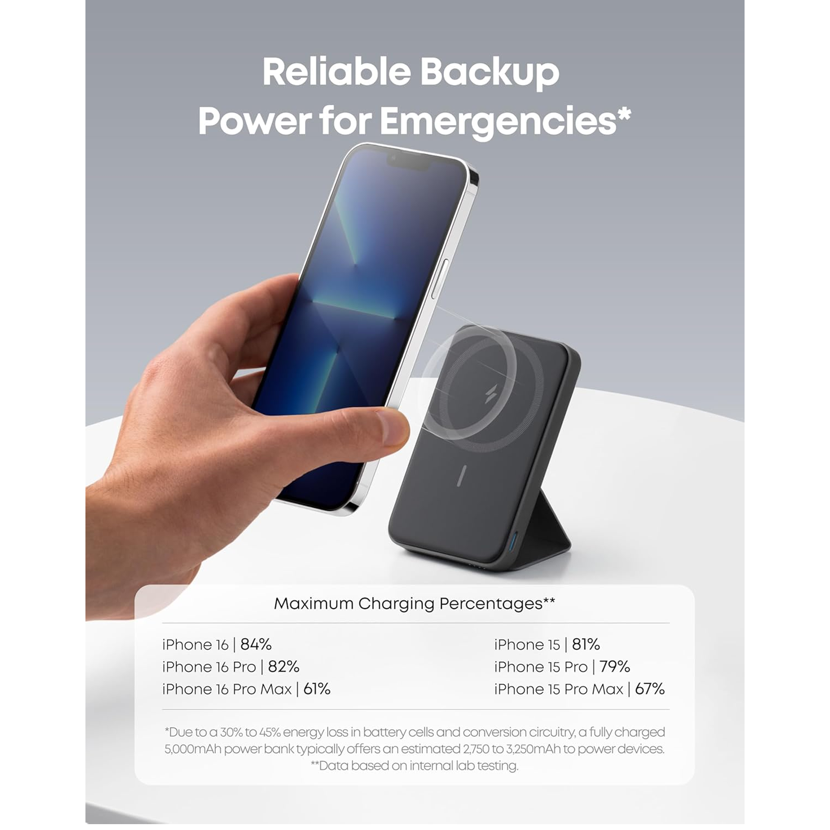 شاحن لاسلكي محمول Anker 622 MagGo 5000mAh ببطارية مغناطيسية - أسود