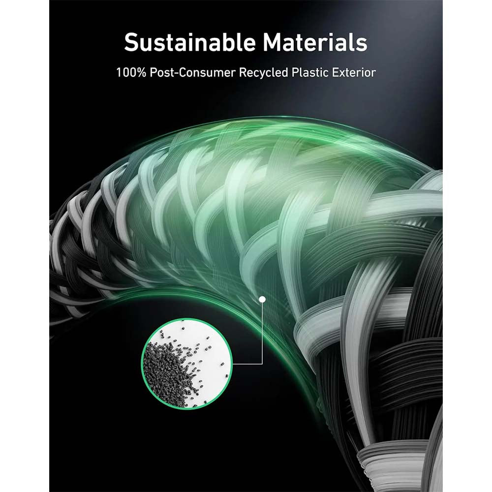كابل مصنوع بطريقة مستدامة: ادعم مستقبلًا أكثر خضرة مع كل استخدام، حيث يتميز بطبقة خارجية مصنوعة من مواد معاد تدويرها بنسبة 100% بعد الاستهلاك.