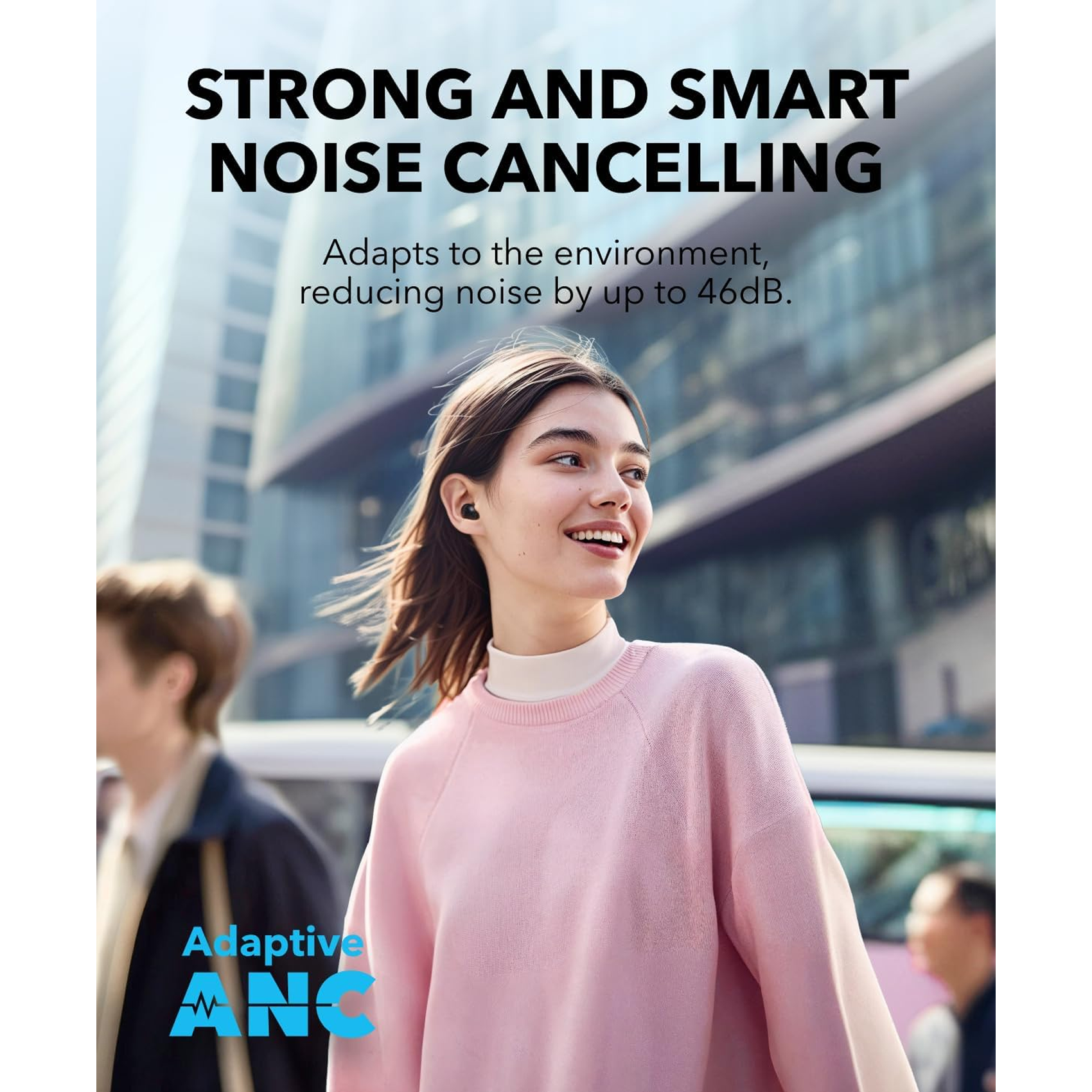 عزل ضوضاء قوي وذكي: سماعات Soundcore A30i العازلة للضوضاء تحجب ضوضاء تصل إلى 46 ديسيبل. باستخدام خوارزميات تكيفية، تكتشف A30i الصوت الخارجي وتضبطه تلقائيًا بذكاء للوصول إلى مستوى عزل الضوضاء المناسب لك.