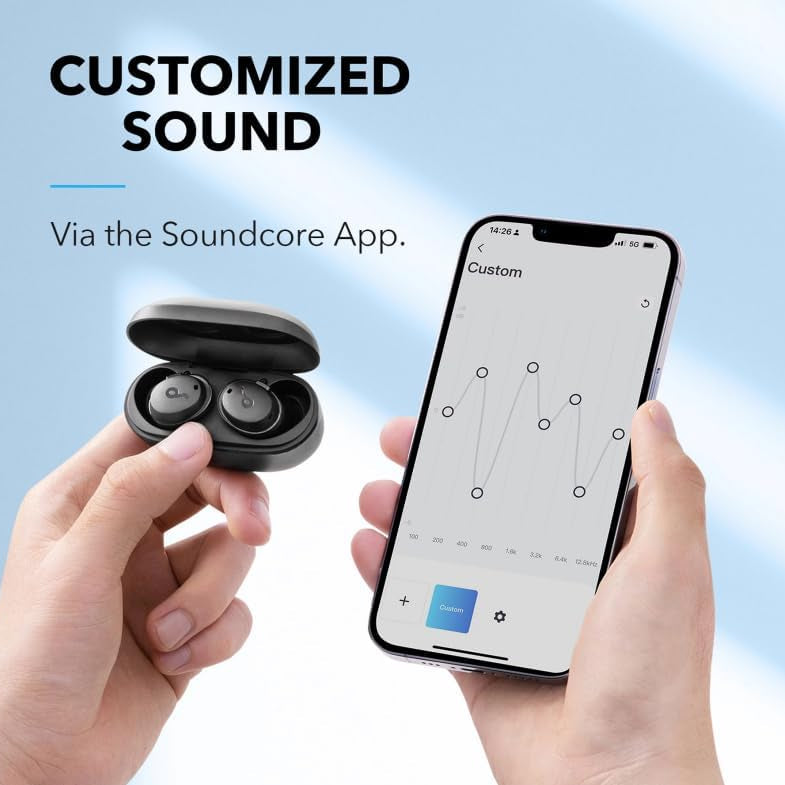 صوت مخصص: باستخدام تطبيق Soundcore، يمكنك الاختيار من بين ما يصل إلى 22 معادلًا مسبقًا، وتخصيص معادلاتك الخاصة.