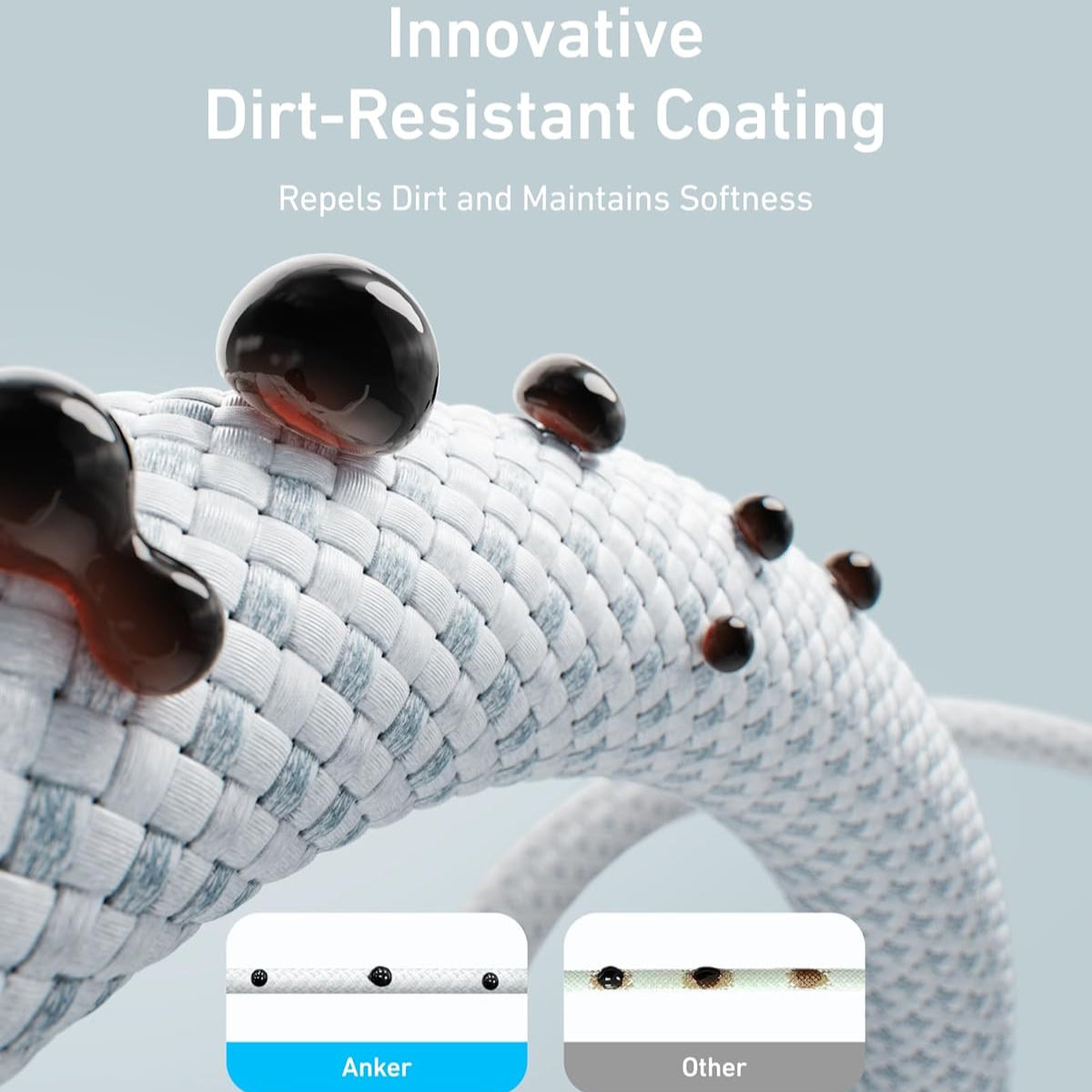كابل أنكر زولو 240 واط من USB Type-C إلى USB Type-C، كابل مضفر ومضاد للأوساخ من النوع C للشحن السريع بطول 1 متر - أبيض