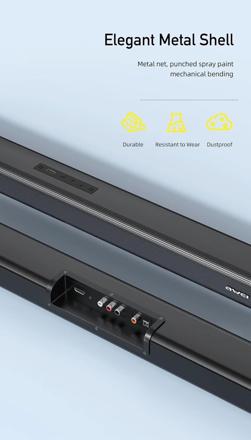 خيارات إدخال متعددة: يدعم شريط الصوت أوضاع إدخال مختلفة، بما في ذلك محرك أقراص فلاش AUX وUSB، مما يوفر المرونة للاتصال بأجهزة ومصادر وسائط مختلفة.
